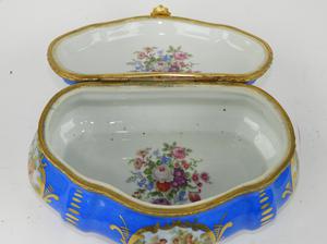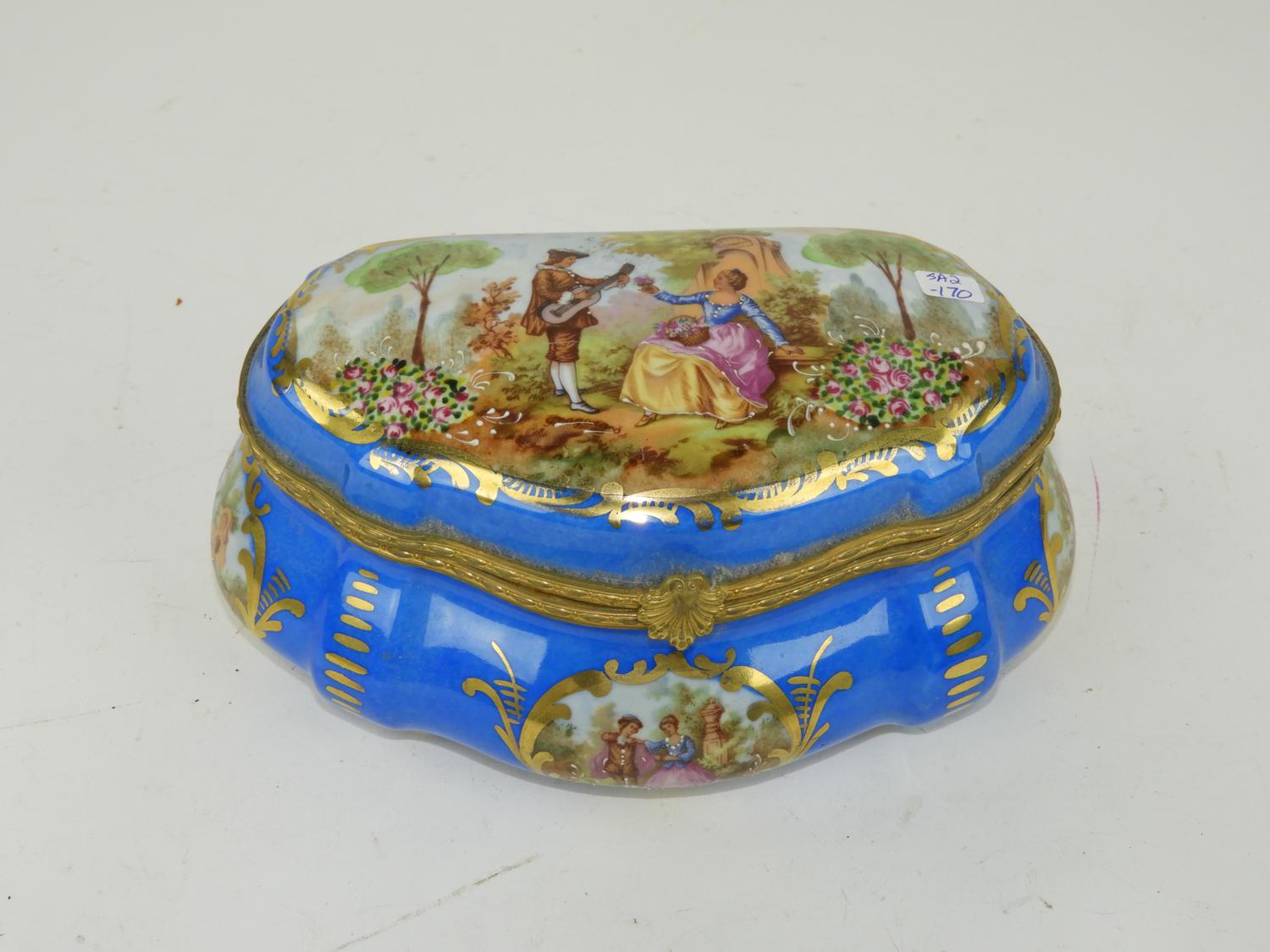sevres hand painted dresser box with gilt mounts, 9" x 5".