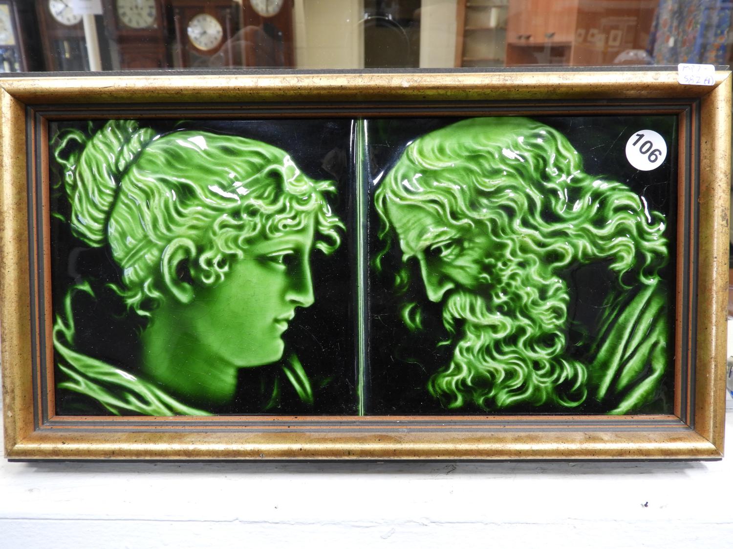 pair of framed figural tiles.