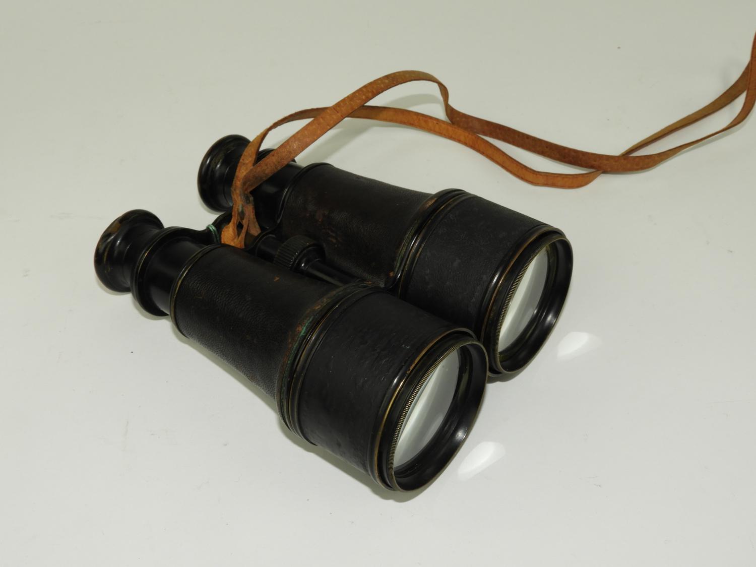 leather cased brass binoculars