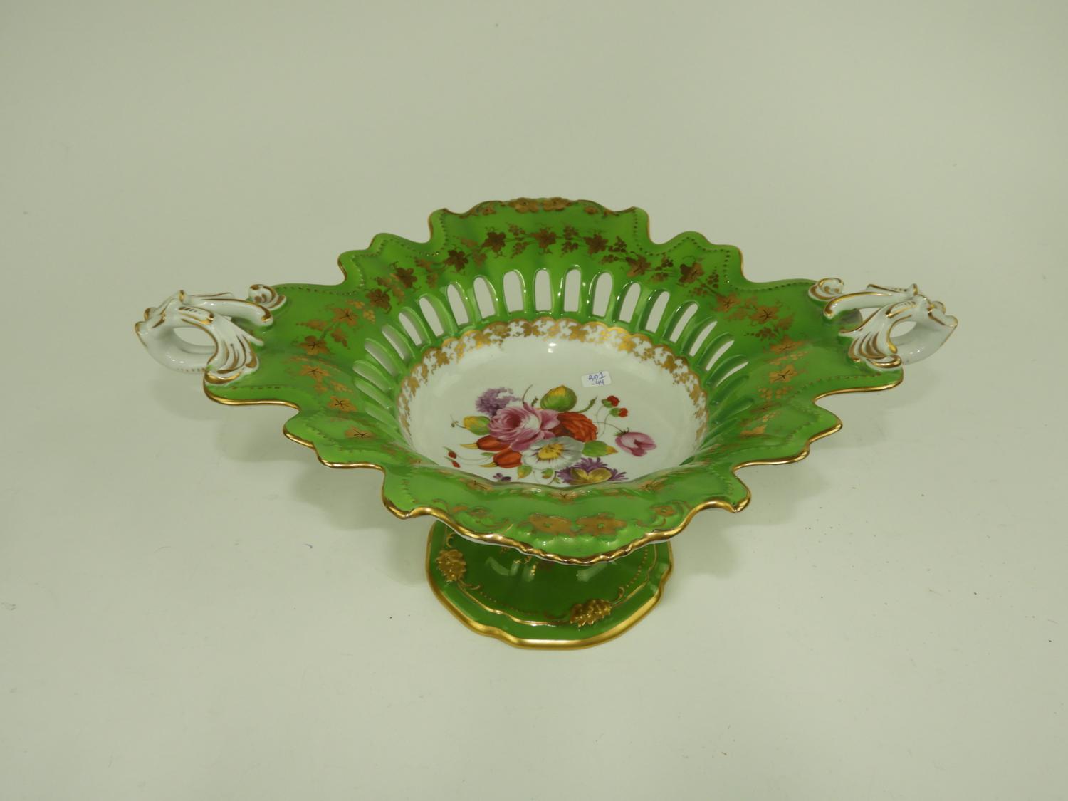 19th century handpainted and gilded porcelain comport, 6 12" x 15"