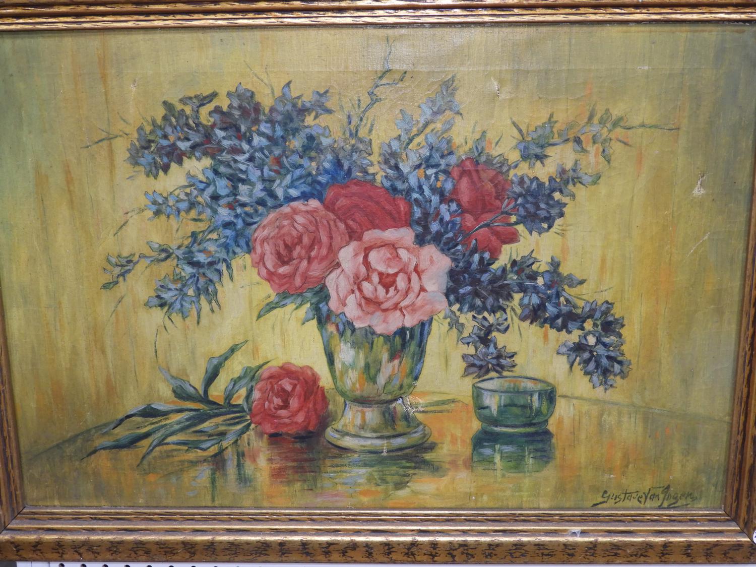 gustave van ingen oil on canvas, 20" x 30", "stillife".