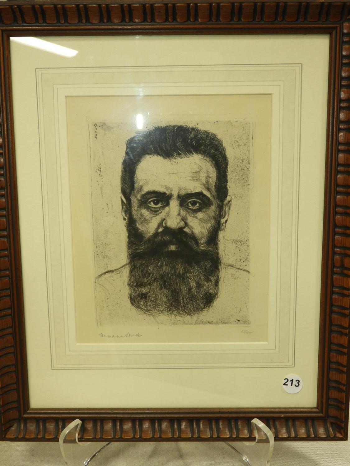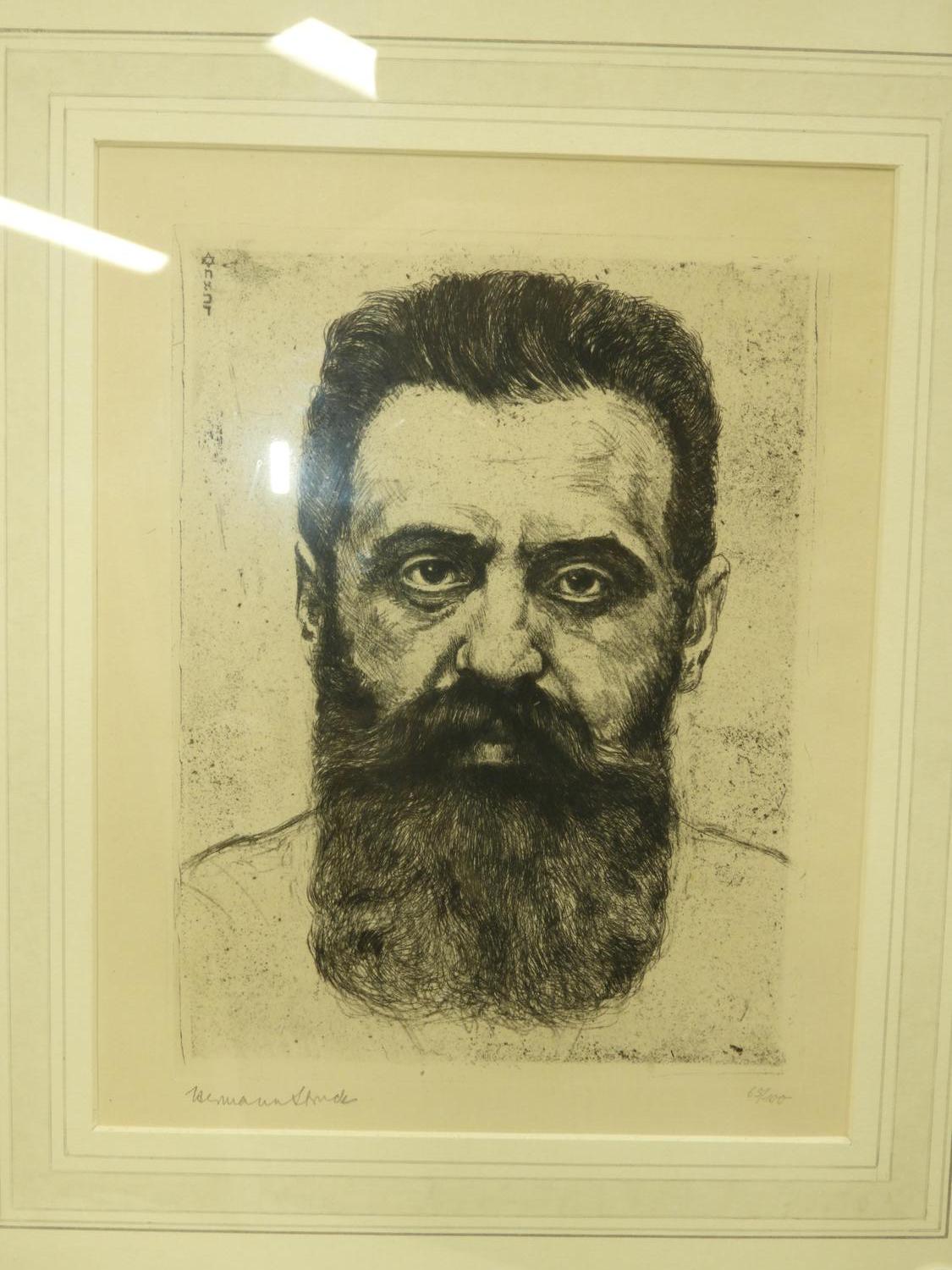 hermann struck, etching #65/100, 8" x 6", "portrait of theodor herzl".