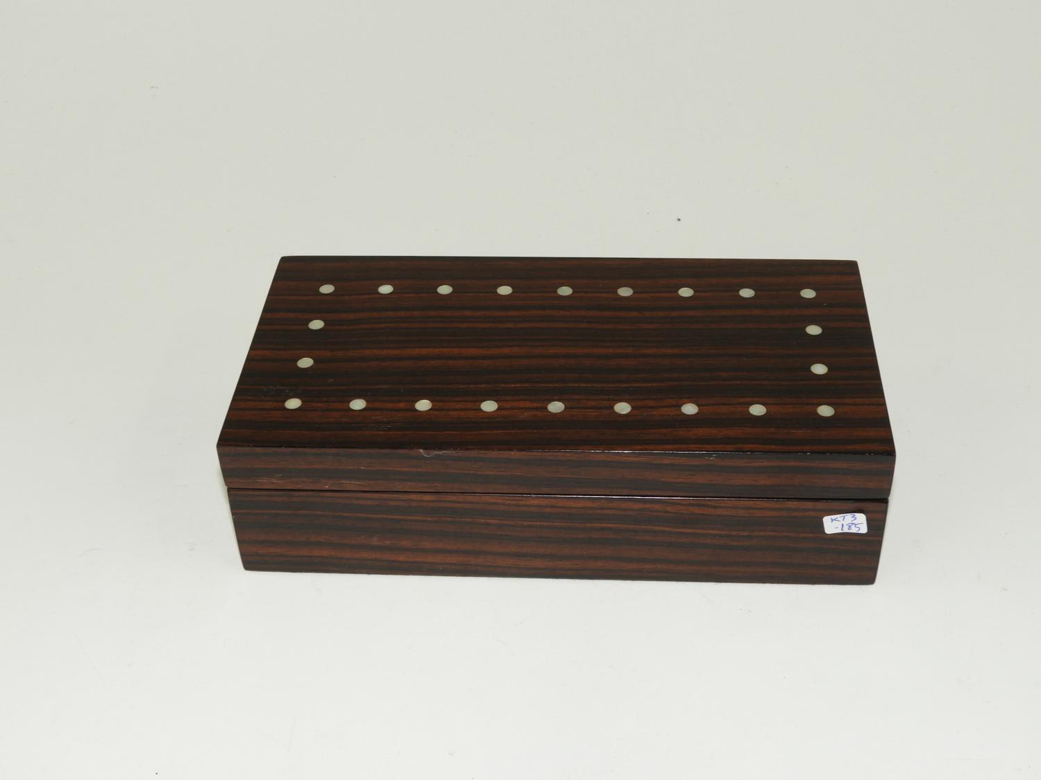 fine quality ebony mop inlaid dresser box, 10" x 5"