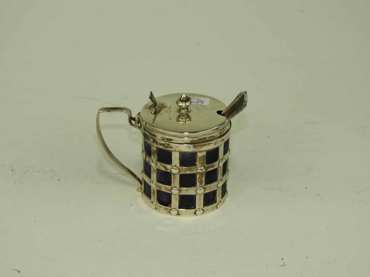 sterling silver cobalt lined pot and spoon