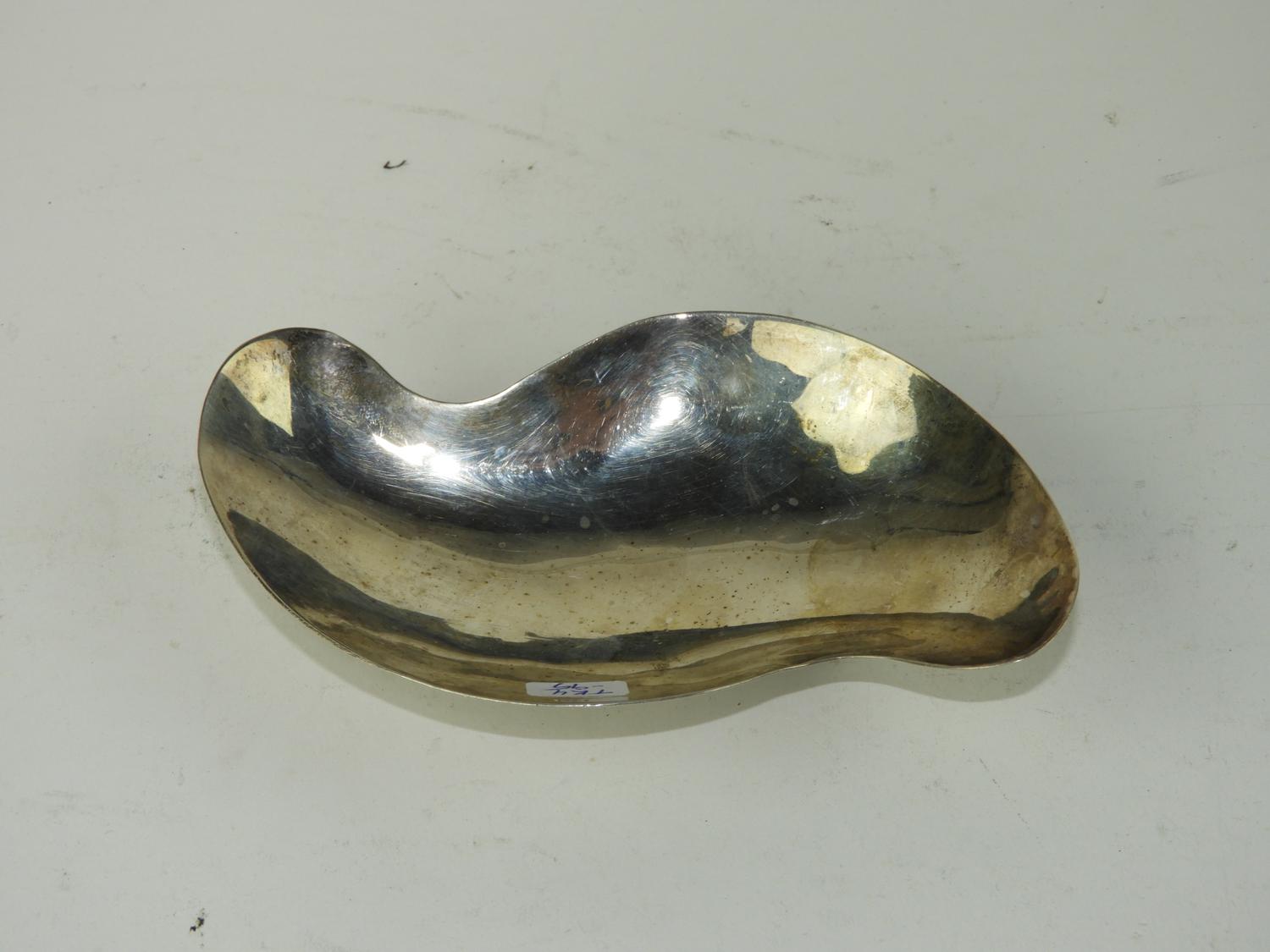mexican modernist sterling silver footed dish, length 5 3/4"