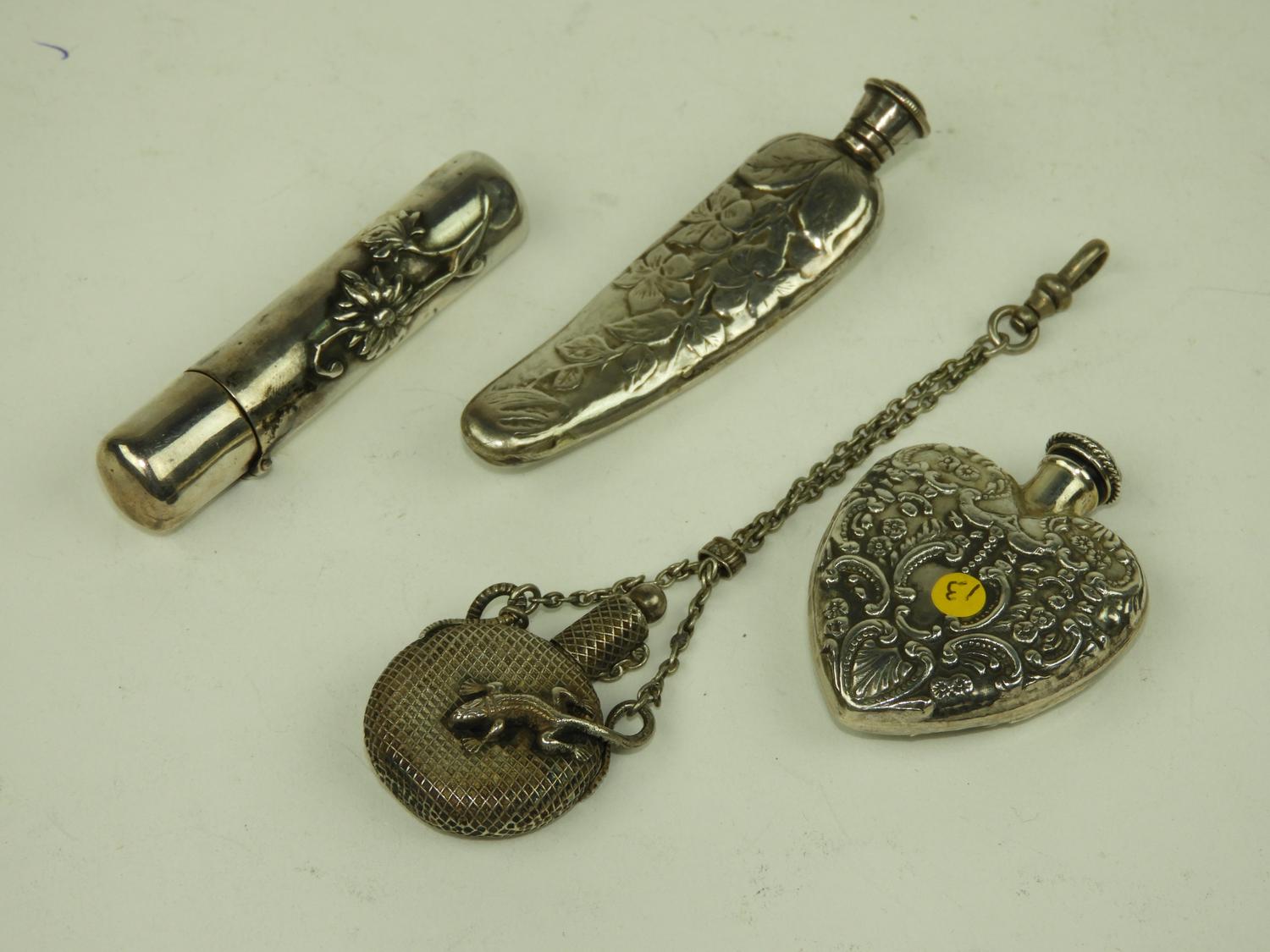 four silver chatelaine bottles