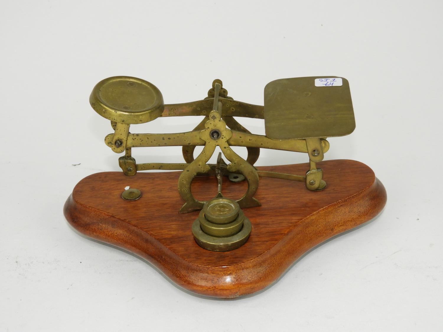 walnut and brass table scale