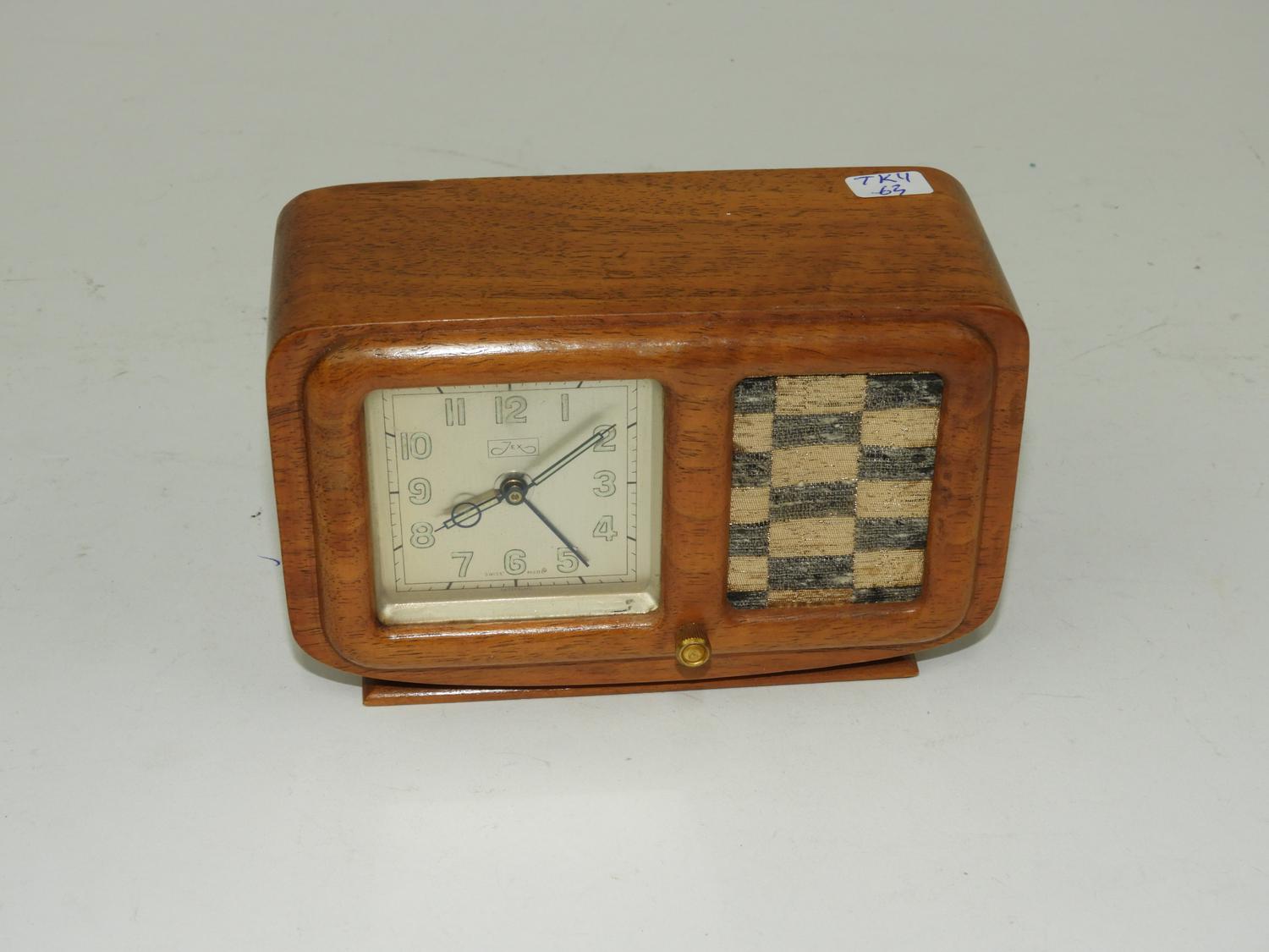 art deco walnut cased swiss alarm clock, ht. 3 1/2"