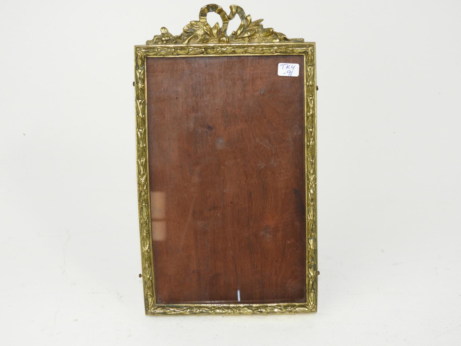 early 20th century brass strut frame, ht. 9"