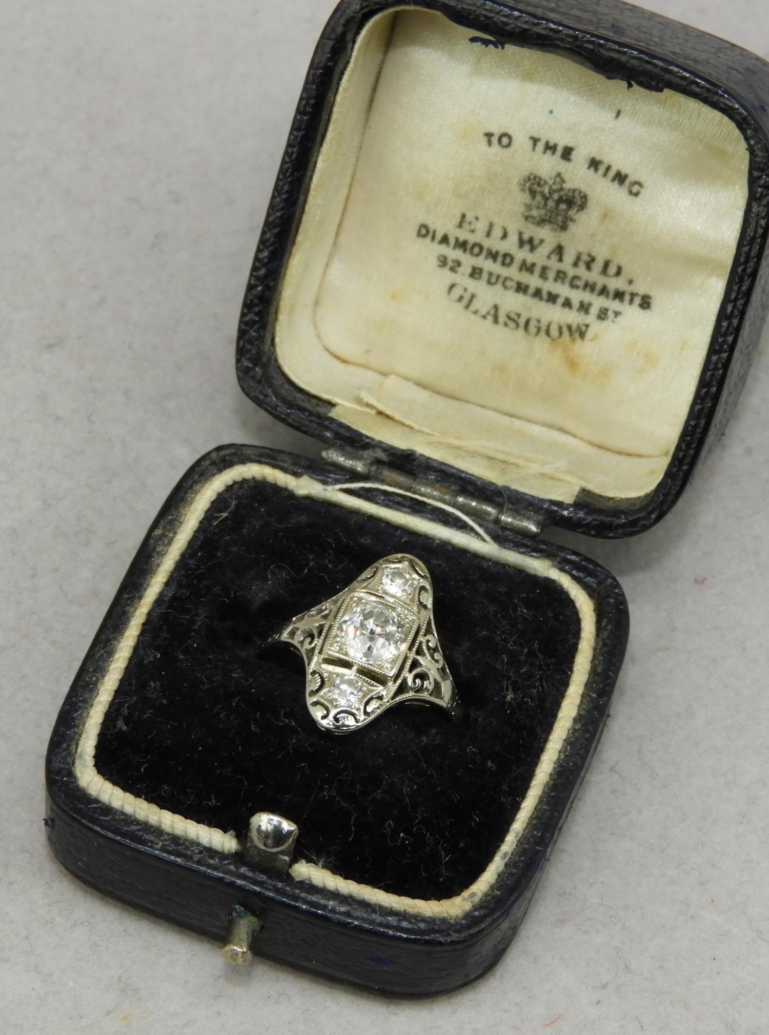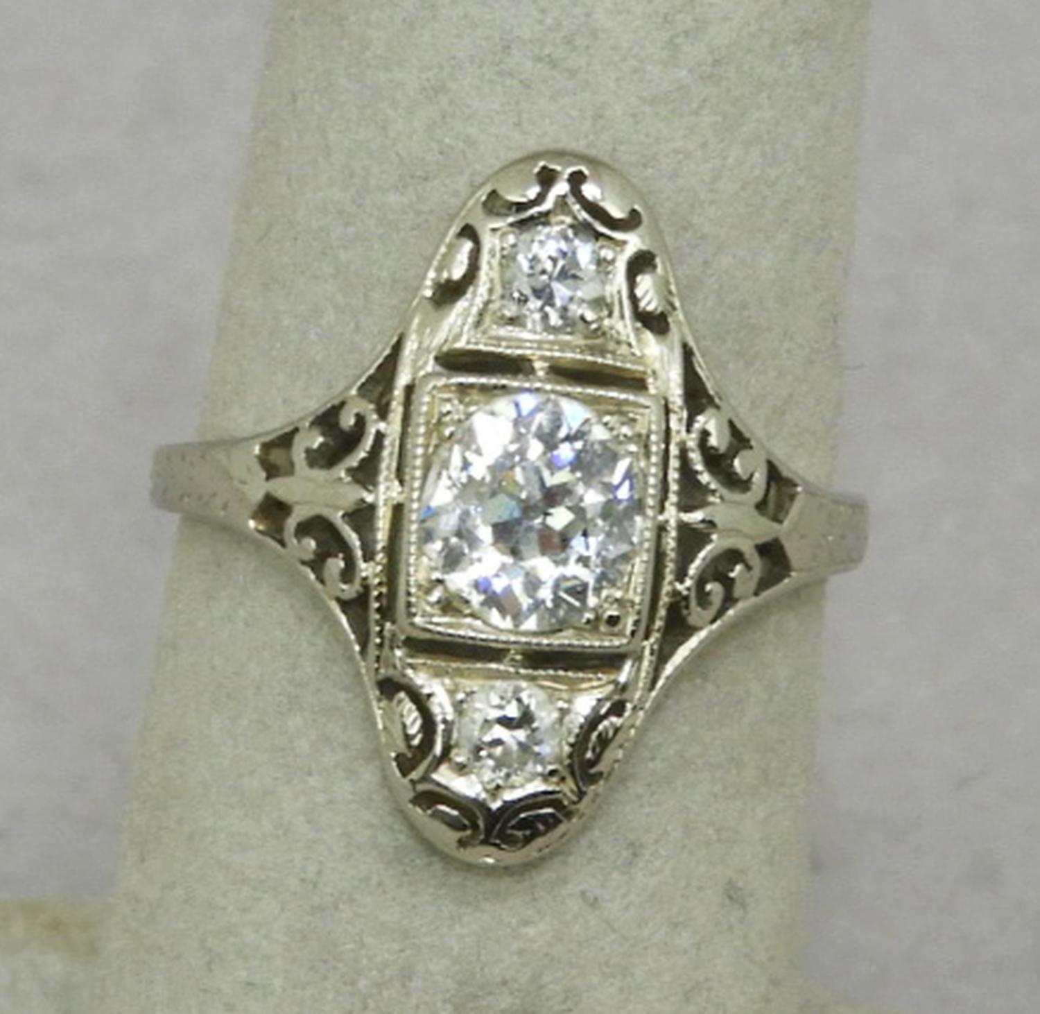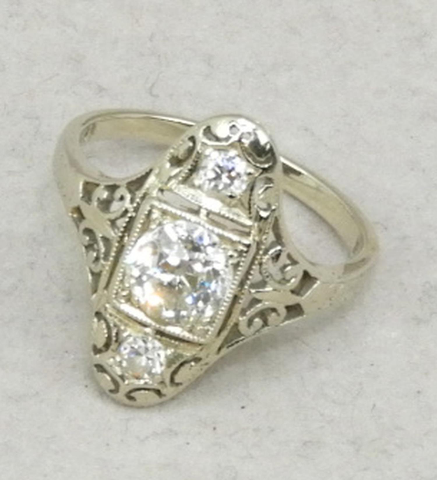 18k white gold diamond ring, 0.75cts, two accent diamonds