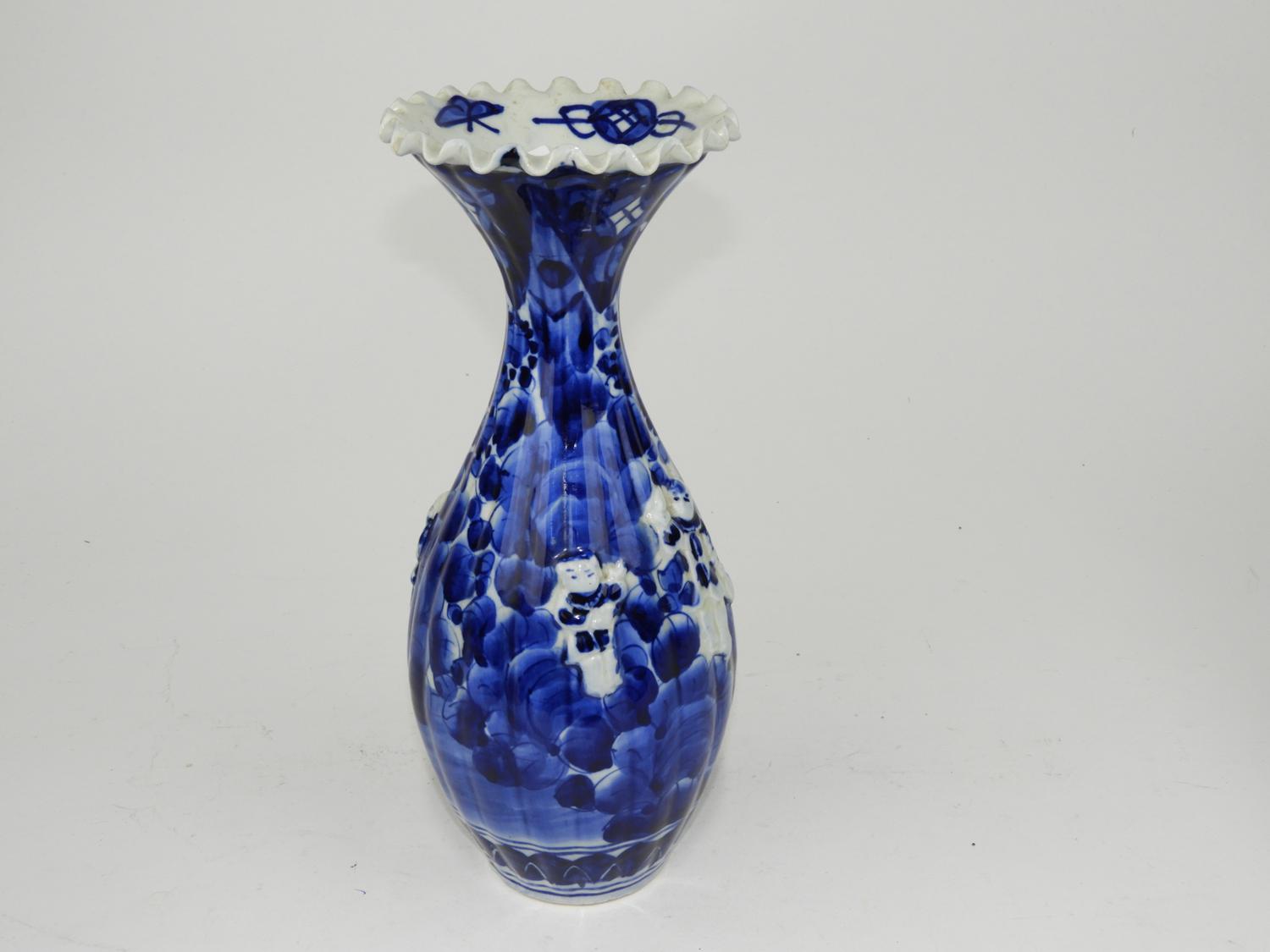 chinese blue and white floral vase, ht. 12"