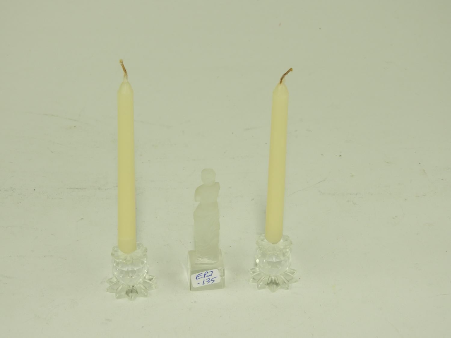 pair of swarovski miniature candles sticks with a frosted glass figure