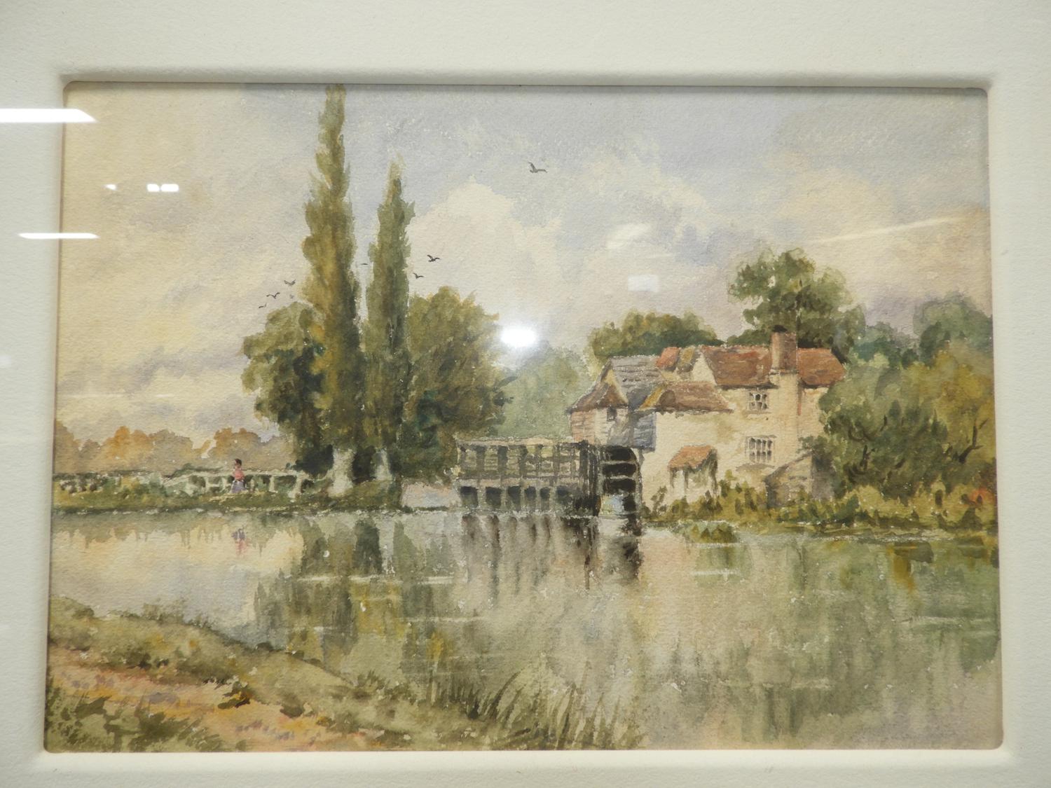 unsigned watercolour, 10" x 14", "river scene with mill".