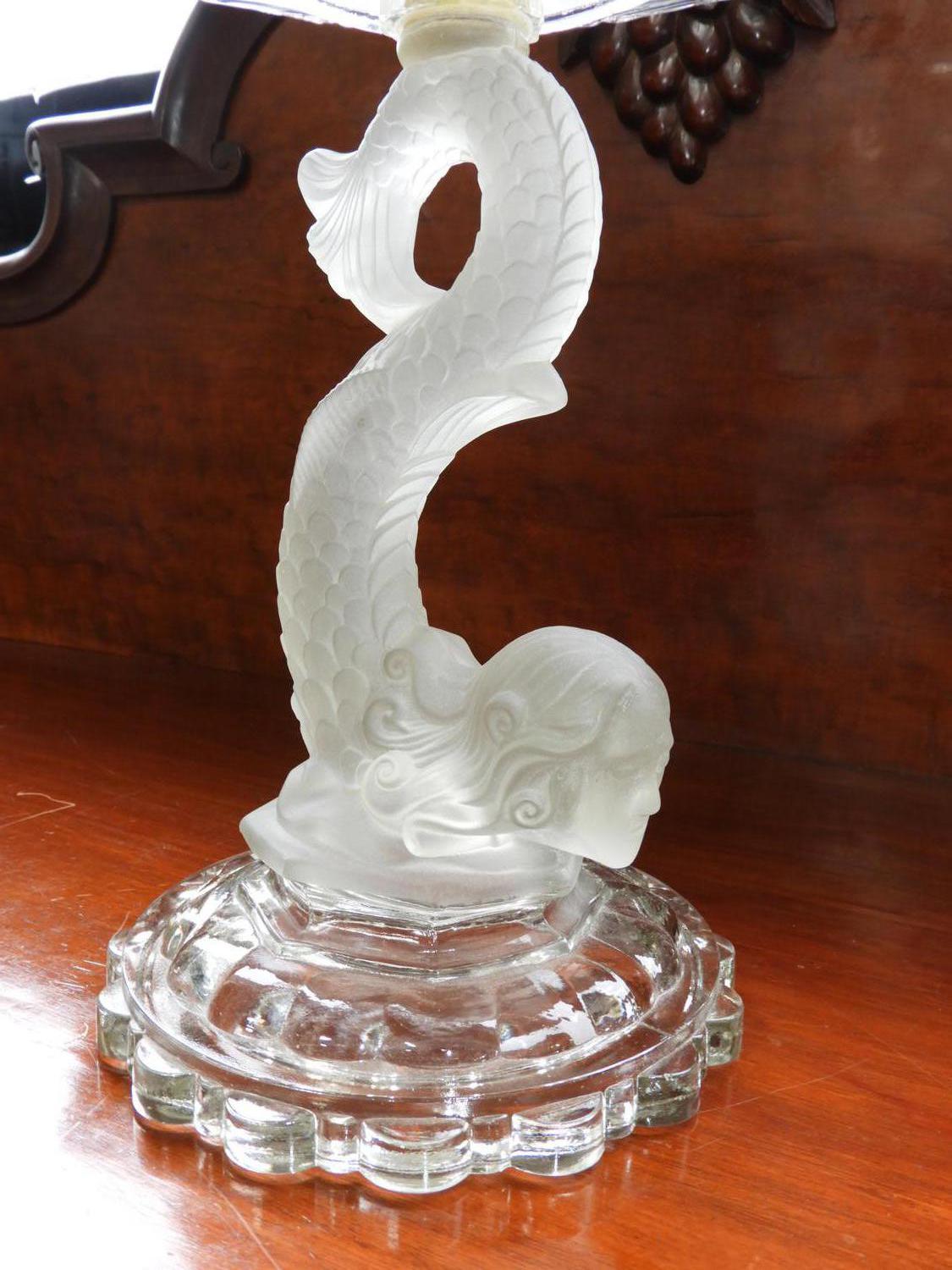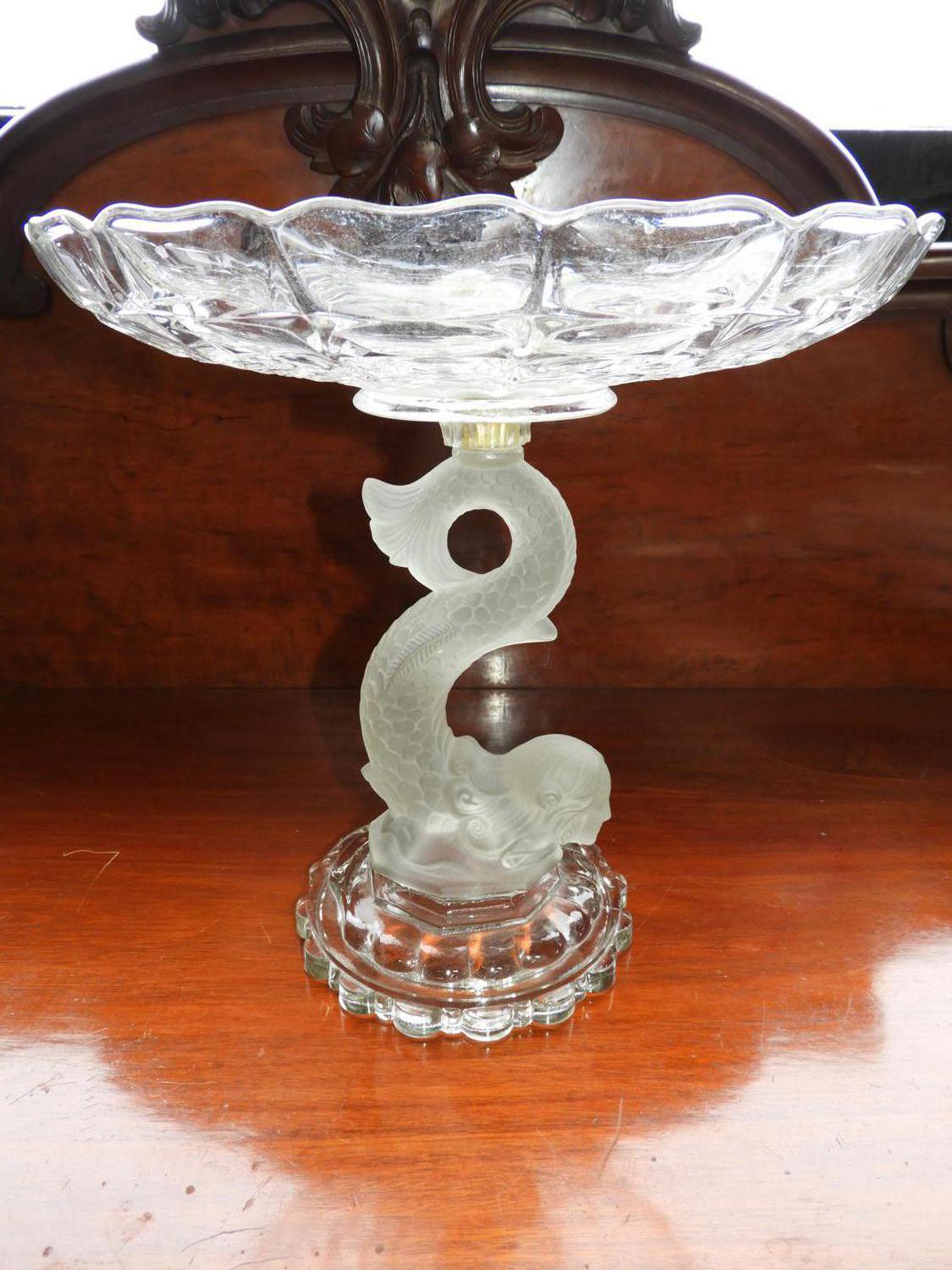 american pressed frosted glass figural dolphin comport 13 1/2" x 12 1/2"