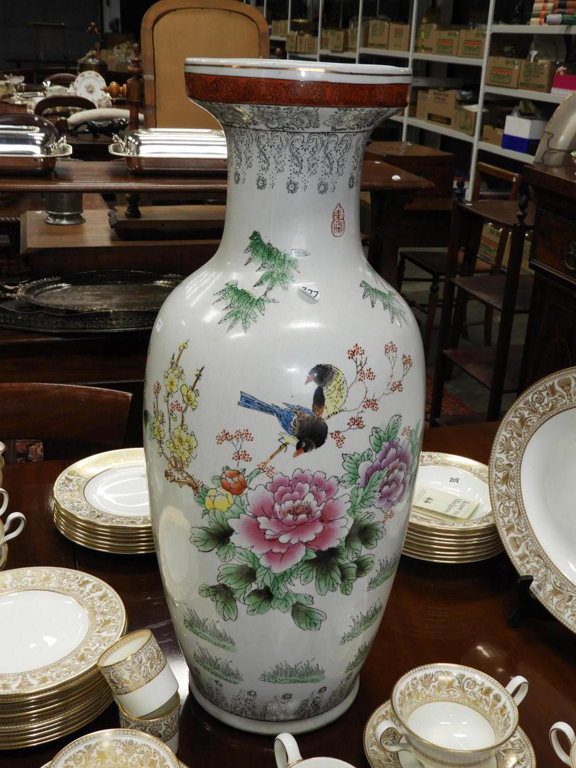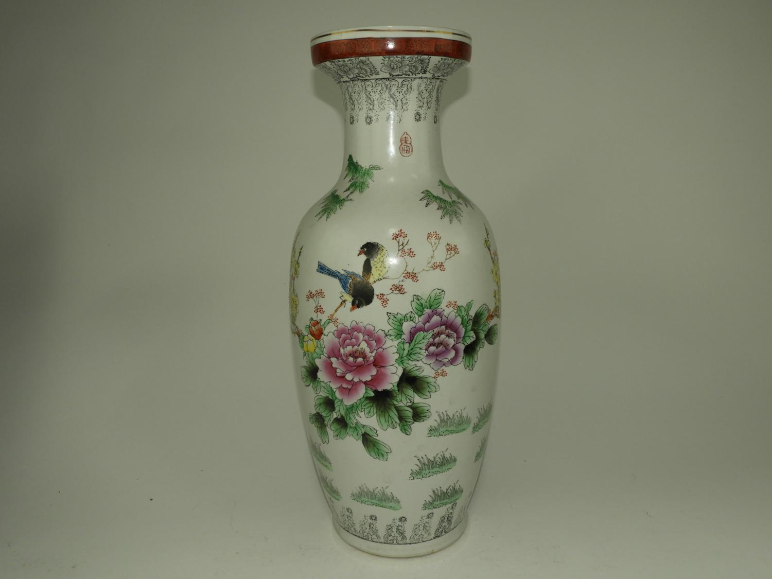 large chinese hand painted baluster vase, ht. 24".
