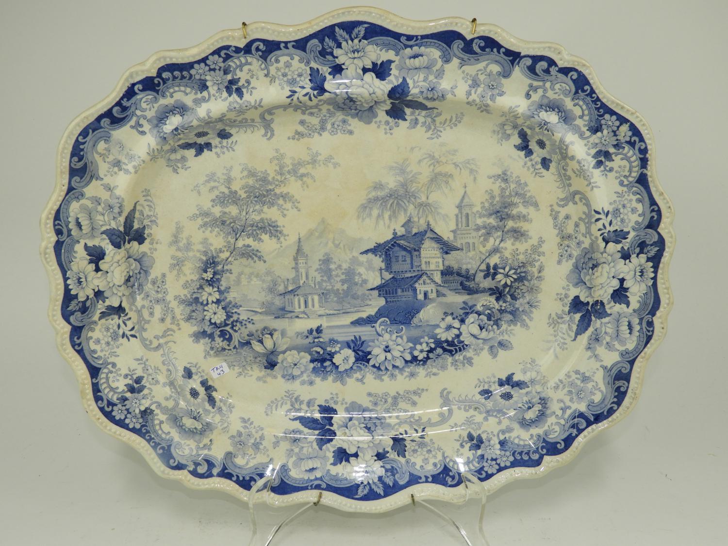 19th century blue and white ironstone lucerne platter, 20" x 16"