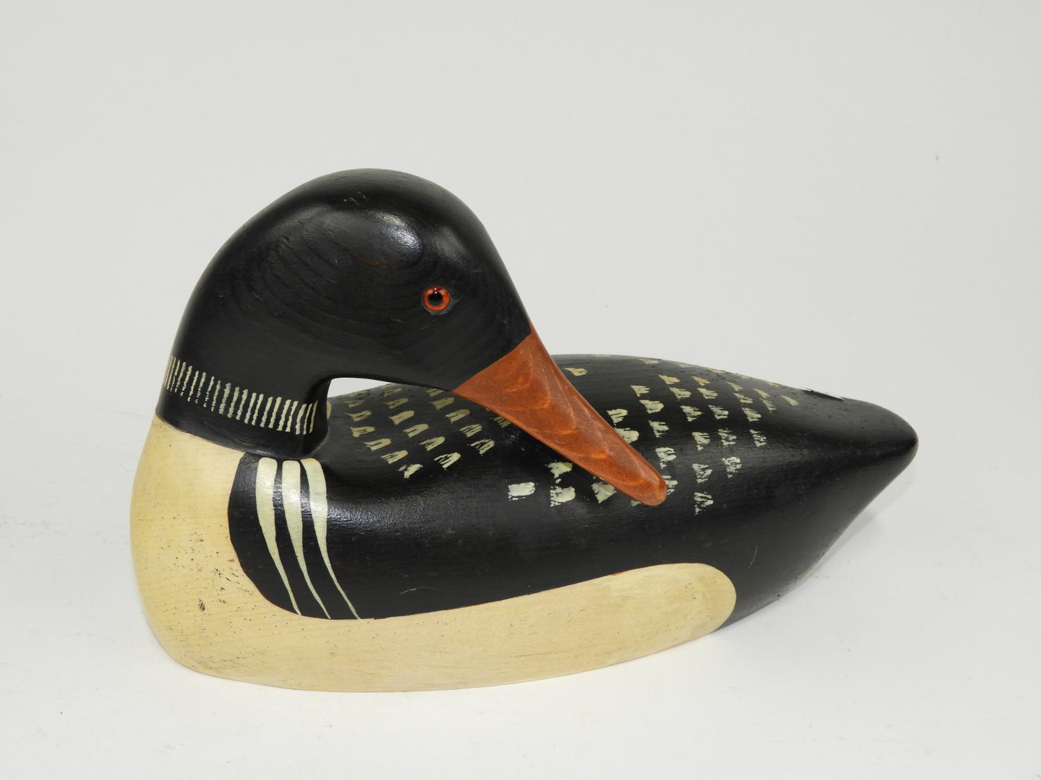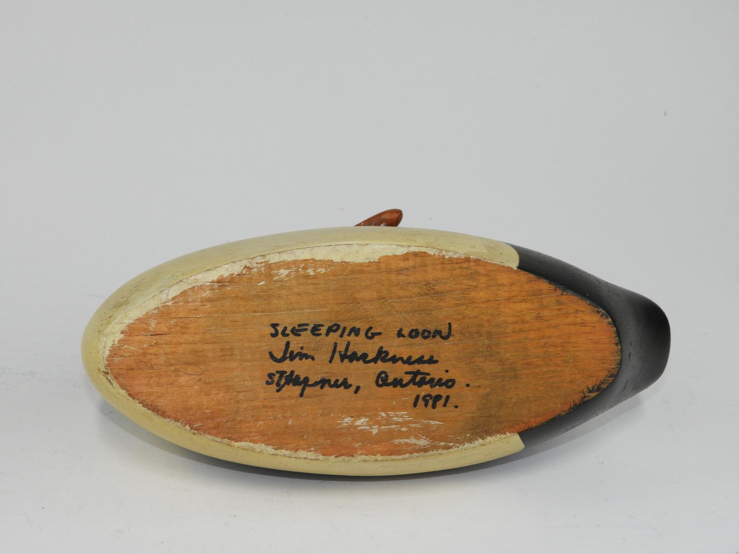 jim harkness carved and painted decoy, "sleeping loon" d. 1981