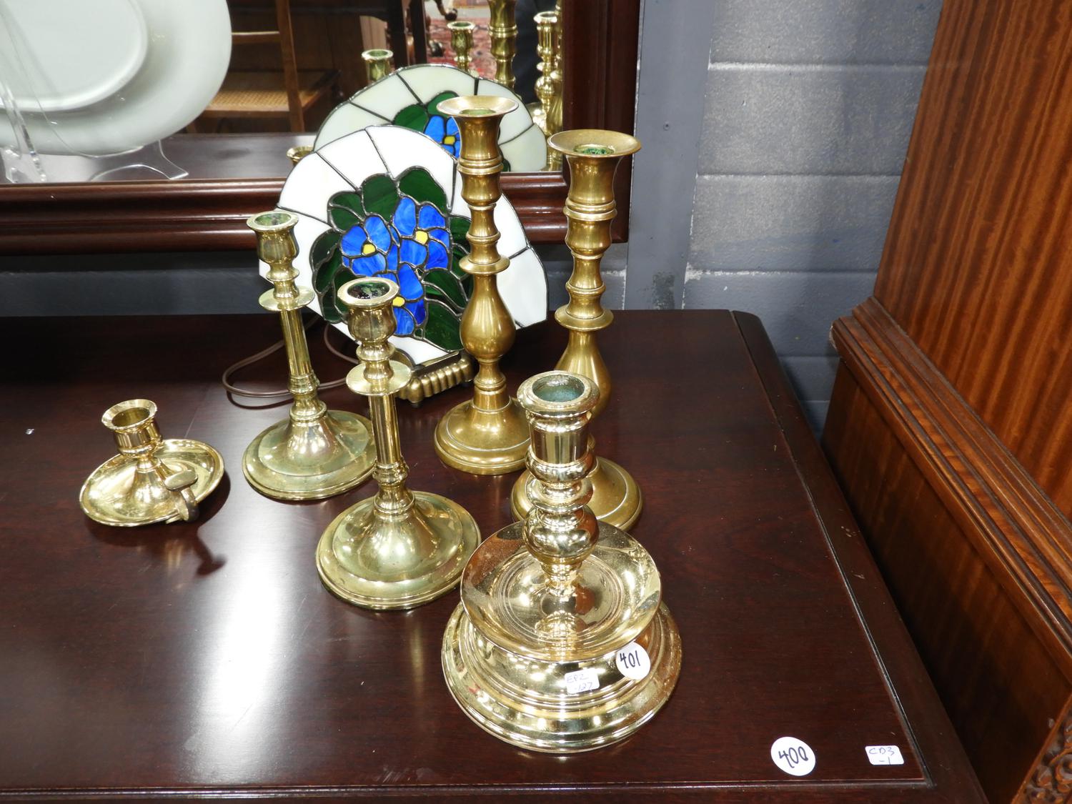 lot of brass candle sticks