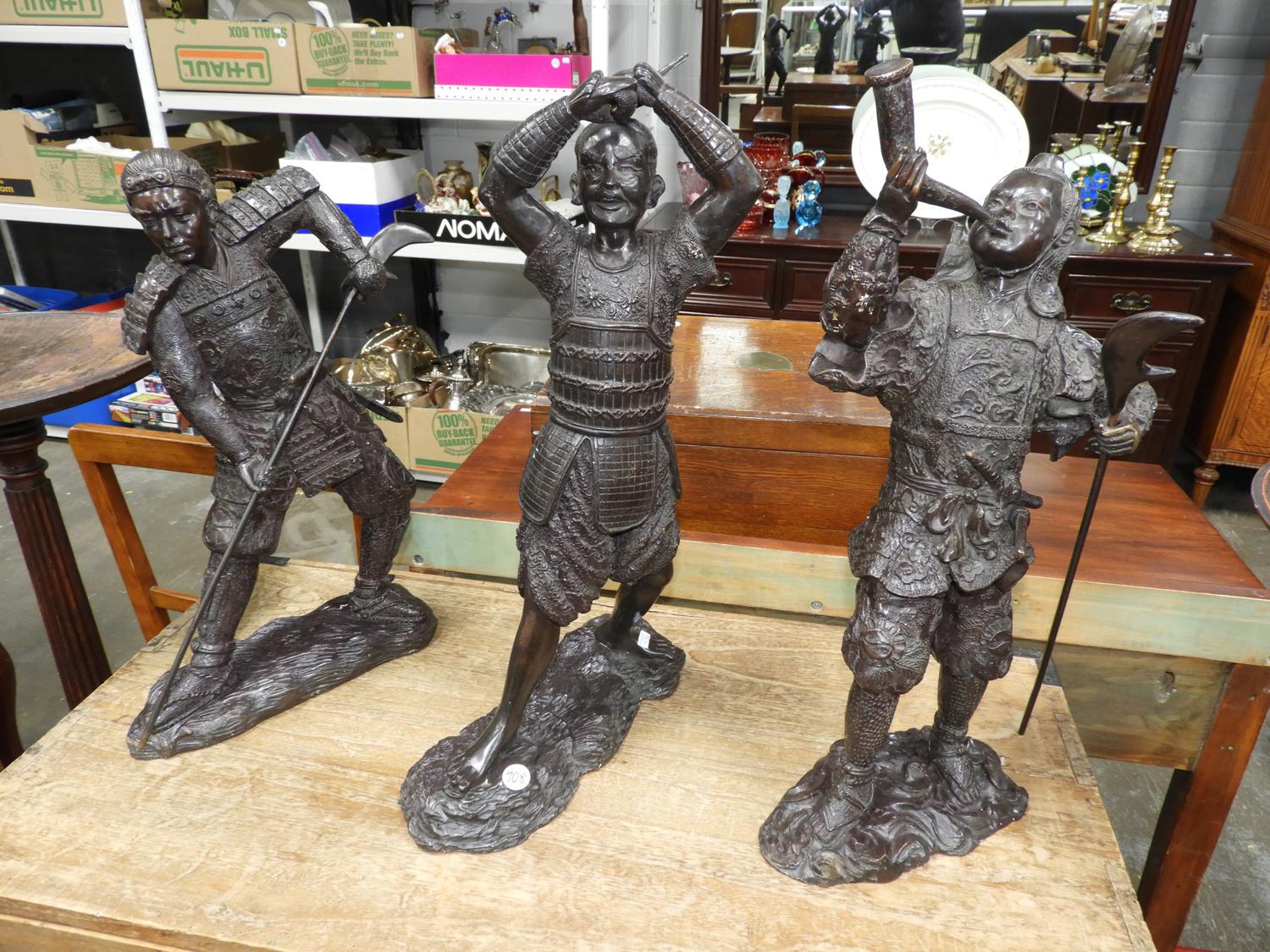 three japanese bronze figures, ht 20".