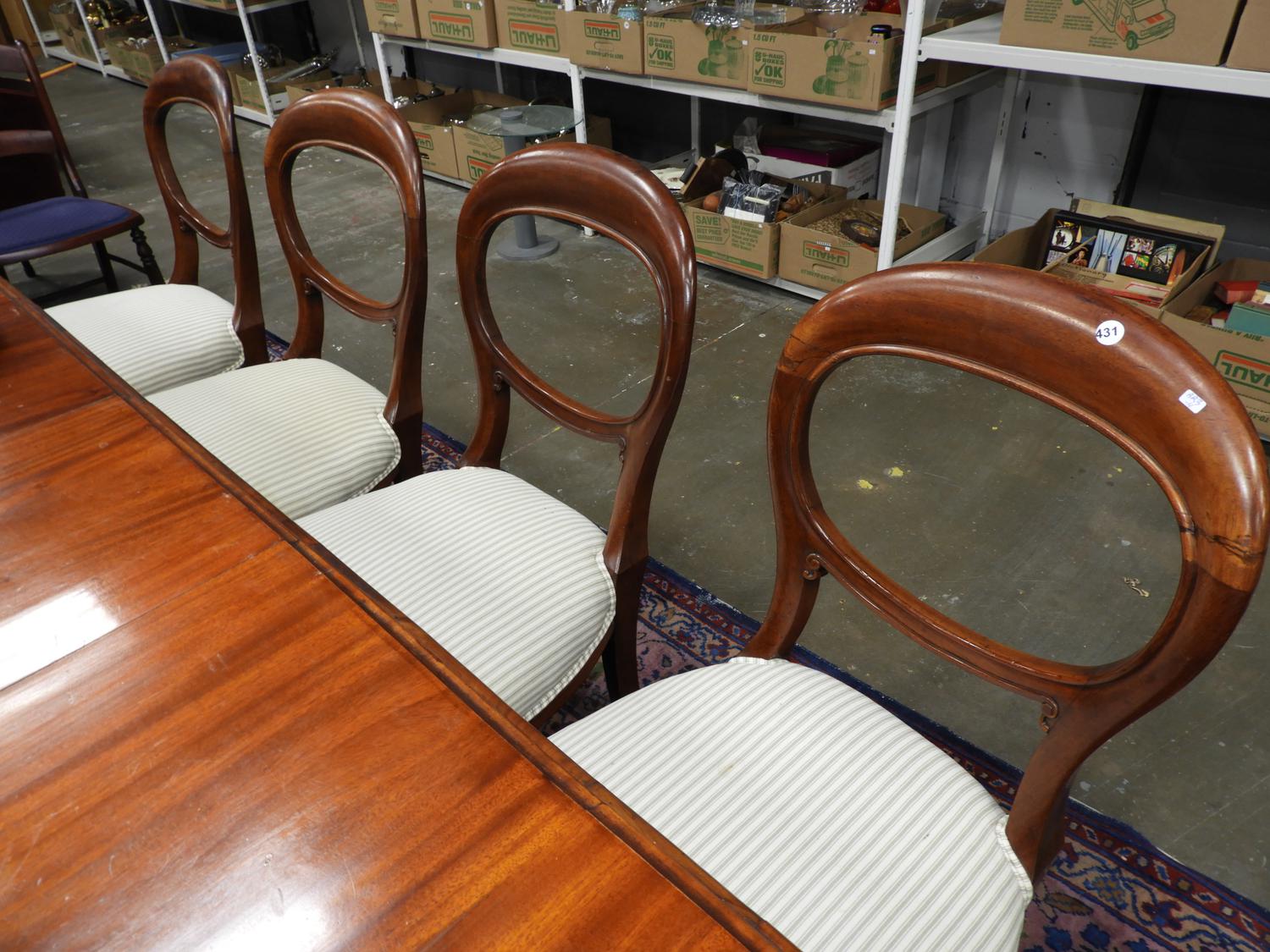 set of six victorian mahogany dining chairs with a victorian mahogany dining table with two leaves.