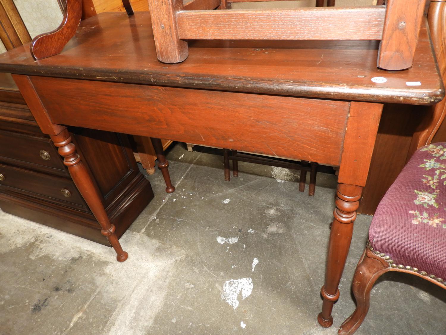 19th century work table with turned legs.