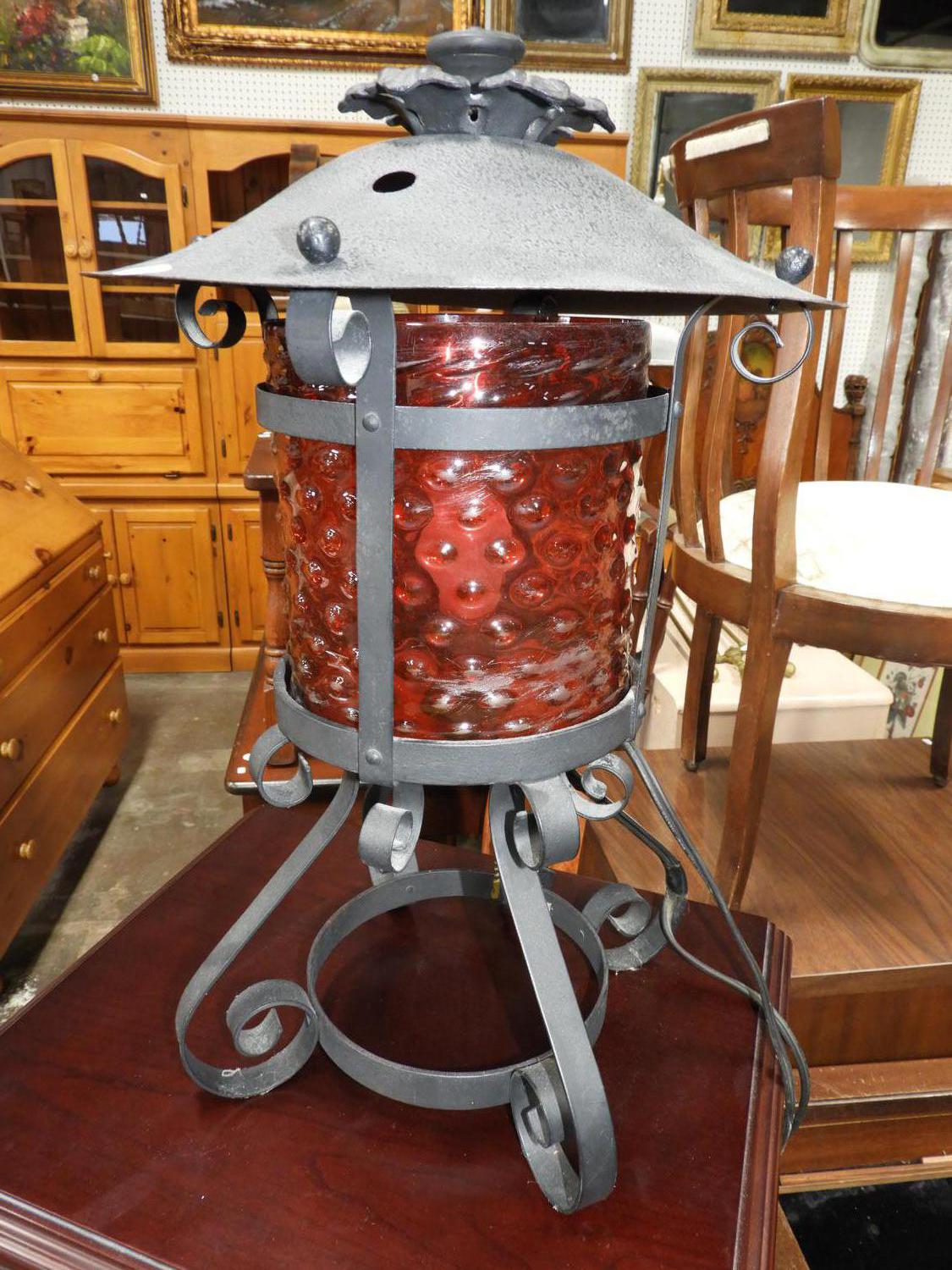 cranberry glass lantern.