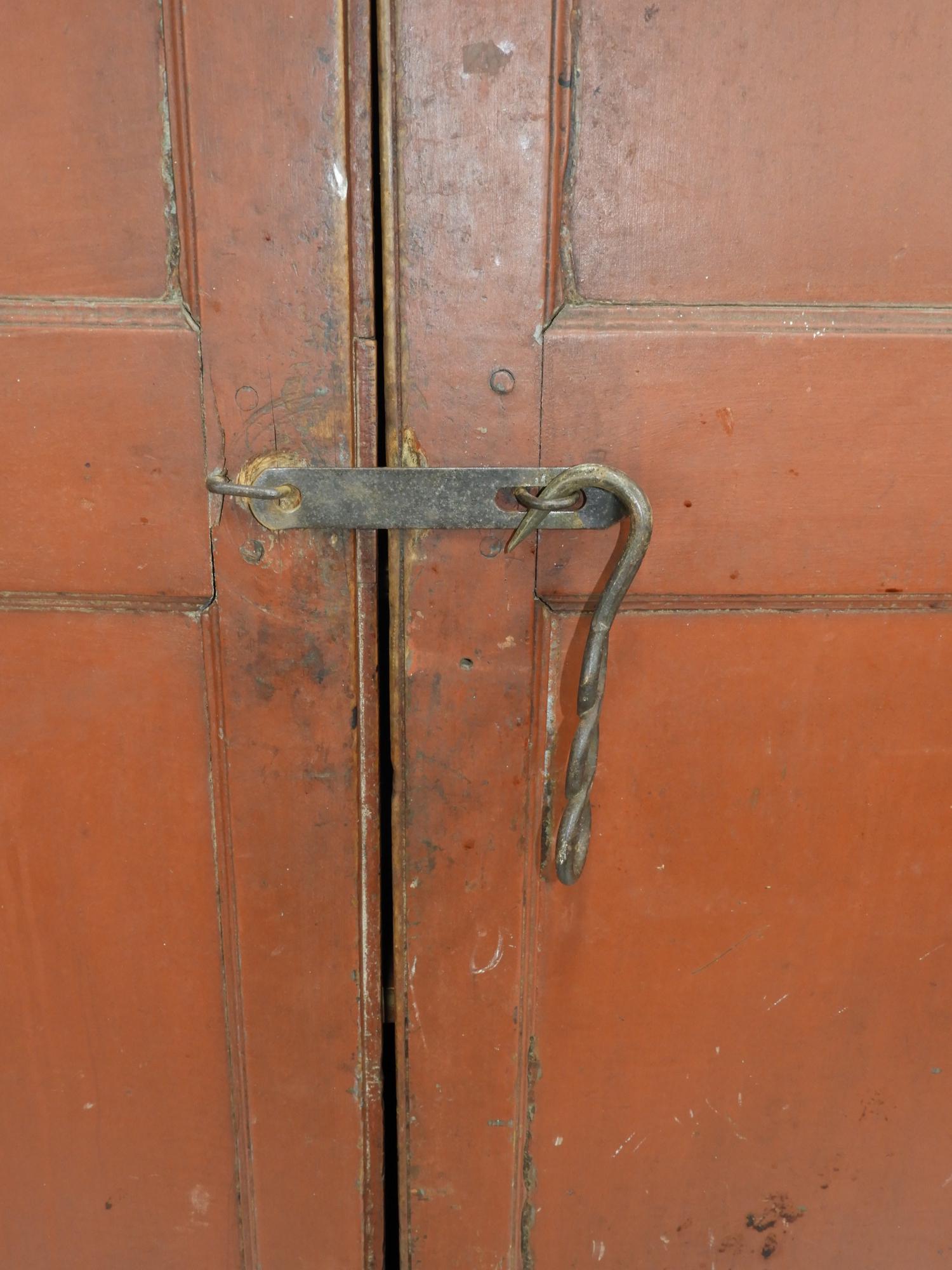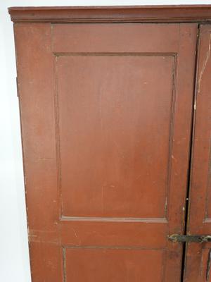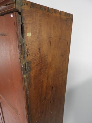 hudson valley dutch chippendale tiger maple cupboard, 65" x 47" x 21".