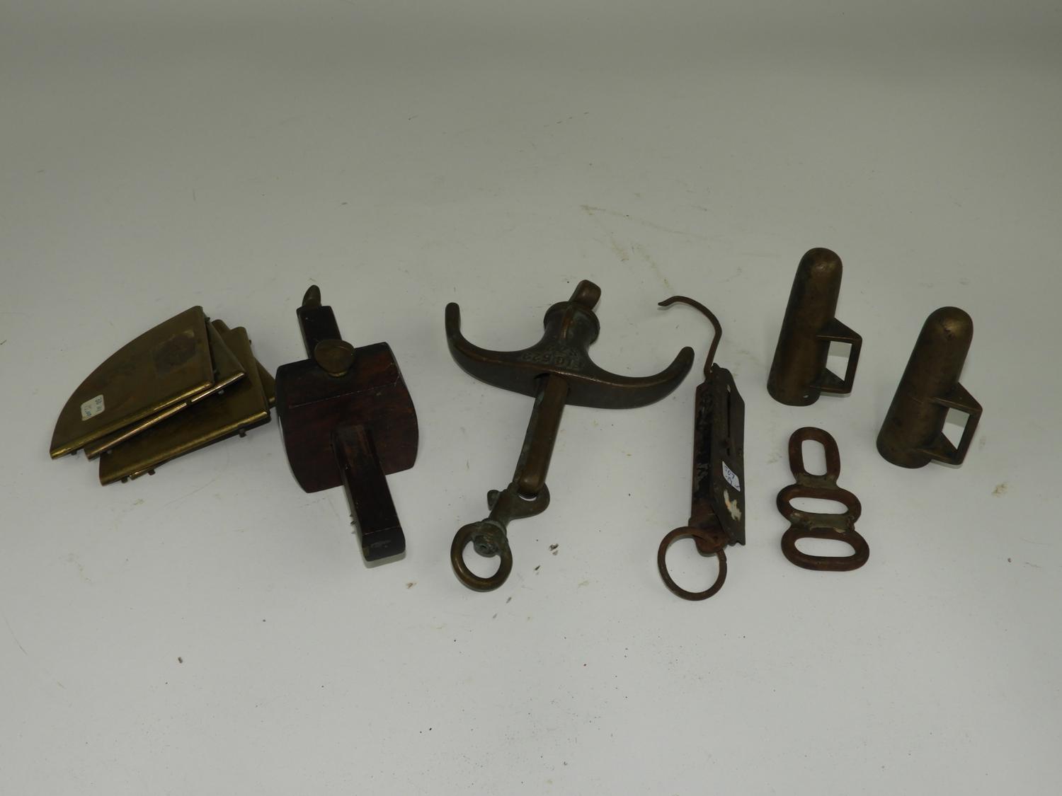 group of vintage wooden and brass tools.