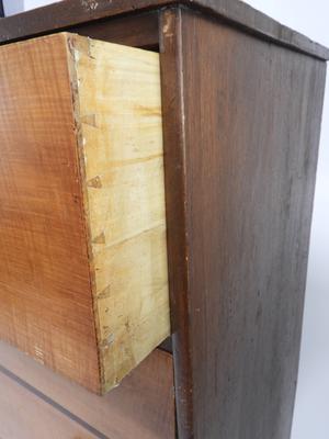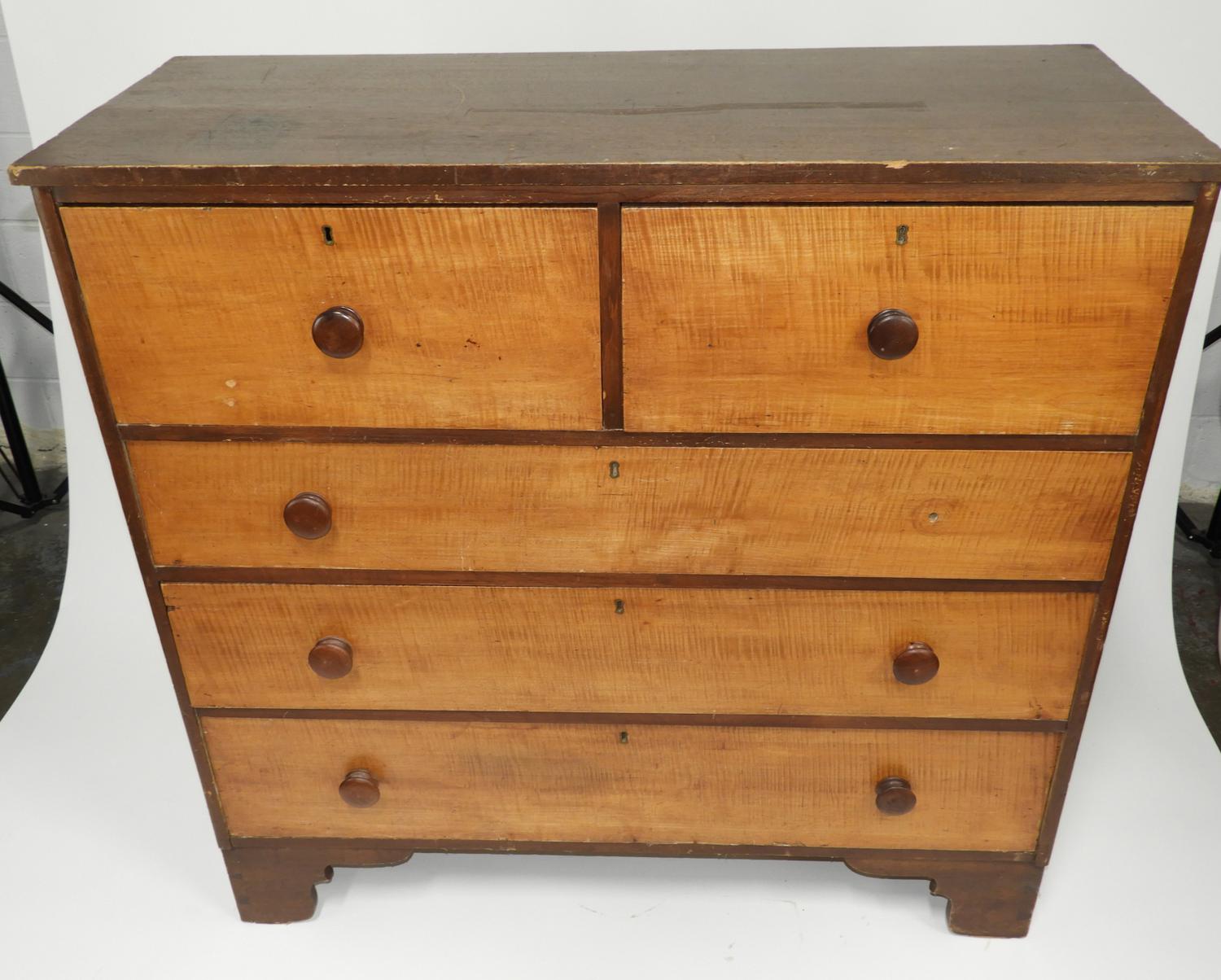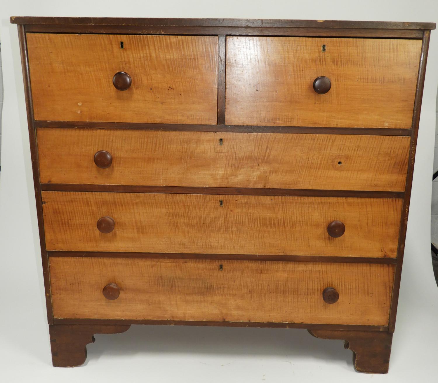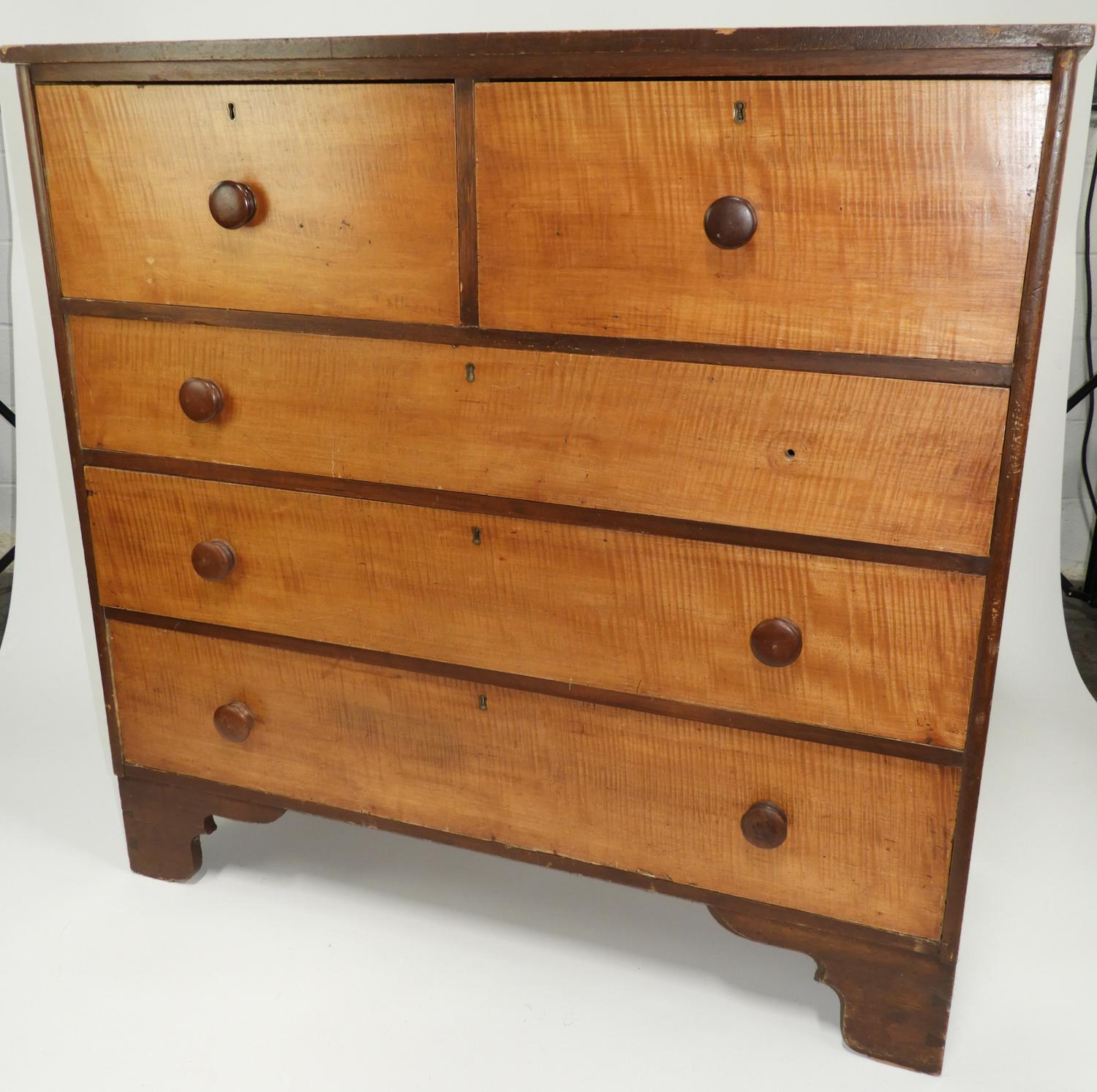 19th century tiger-maple chest of drawers, 45" x 47" x 19".