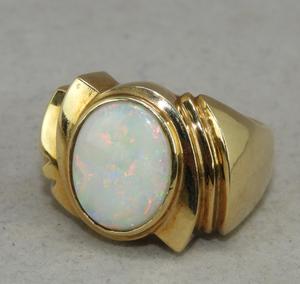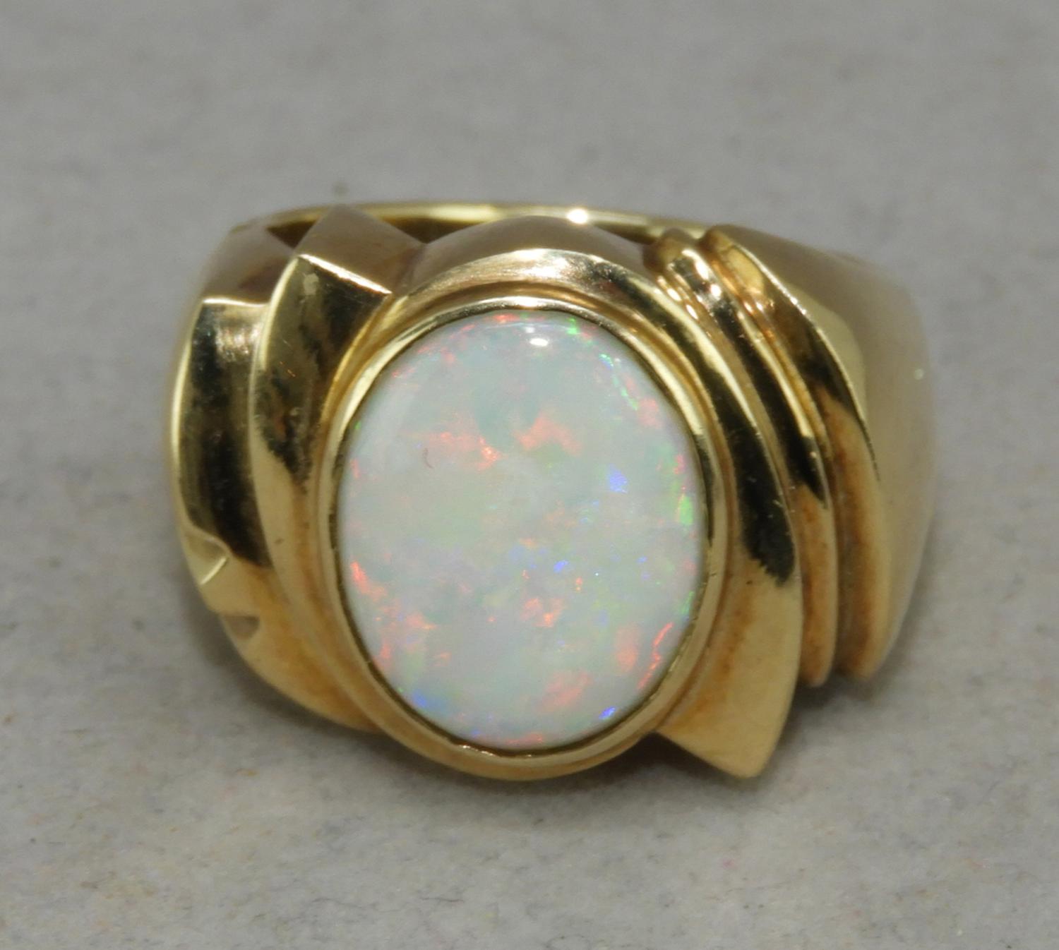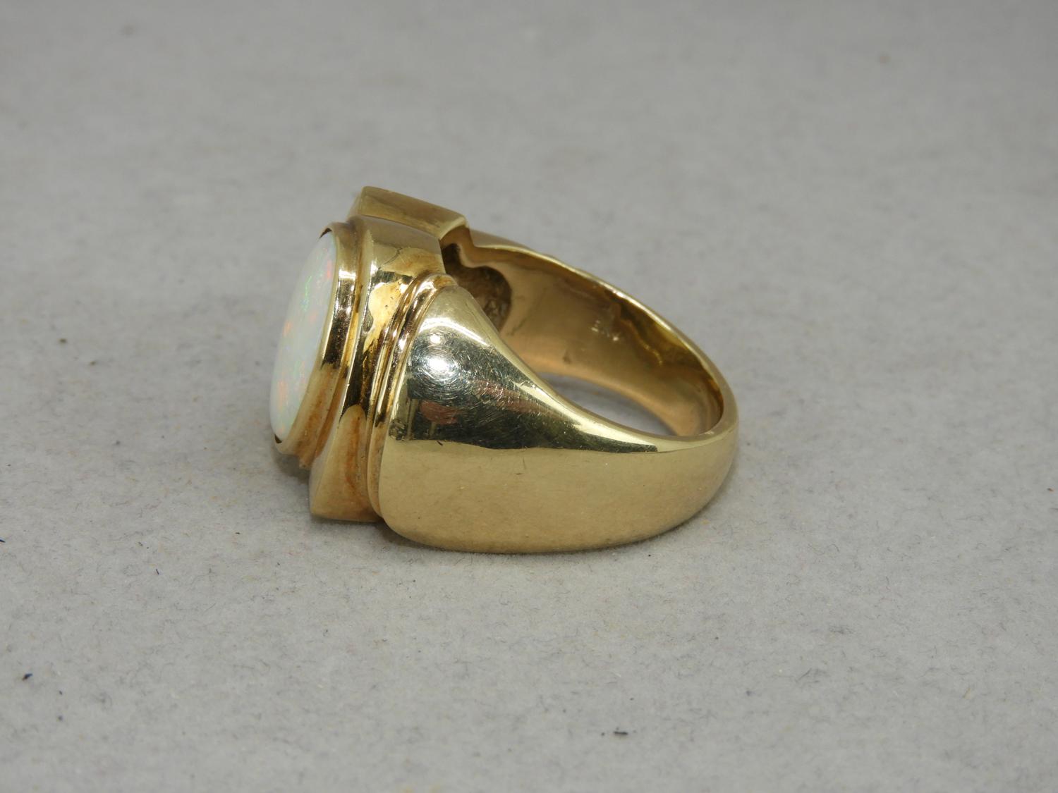 10k yellow gold opal ring, weighing approx 28.9grams, size 13