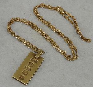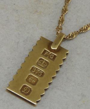 9k (375) ingot pendant on 10k rope chain(12.2grams)