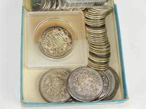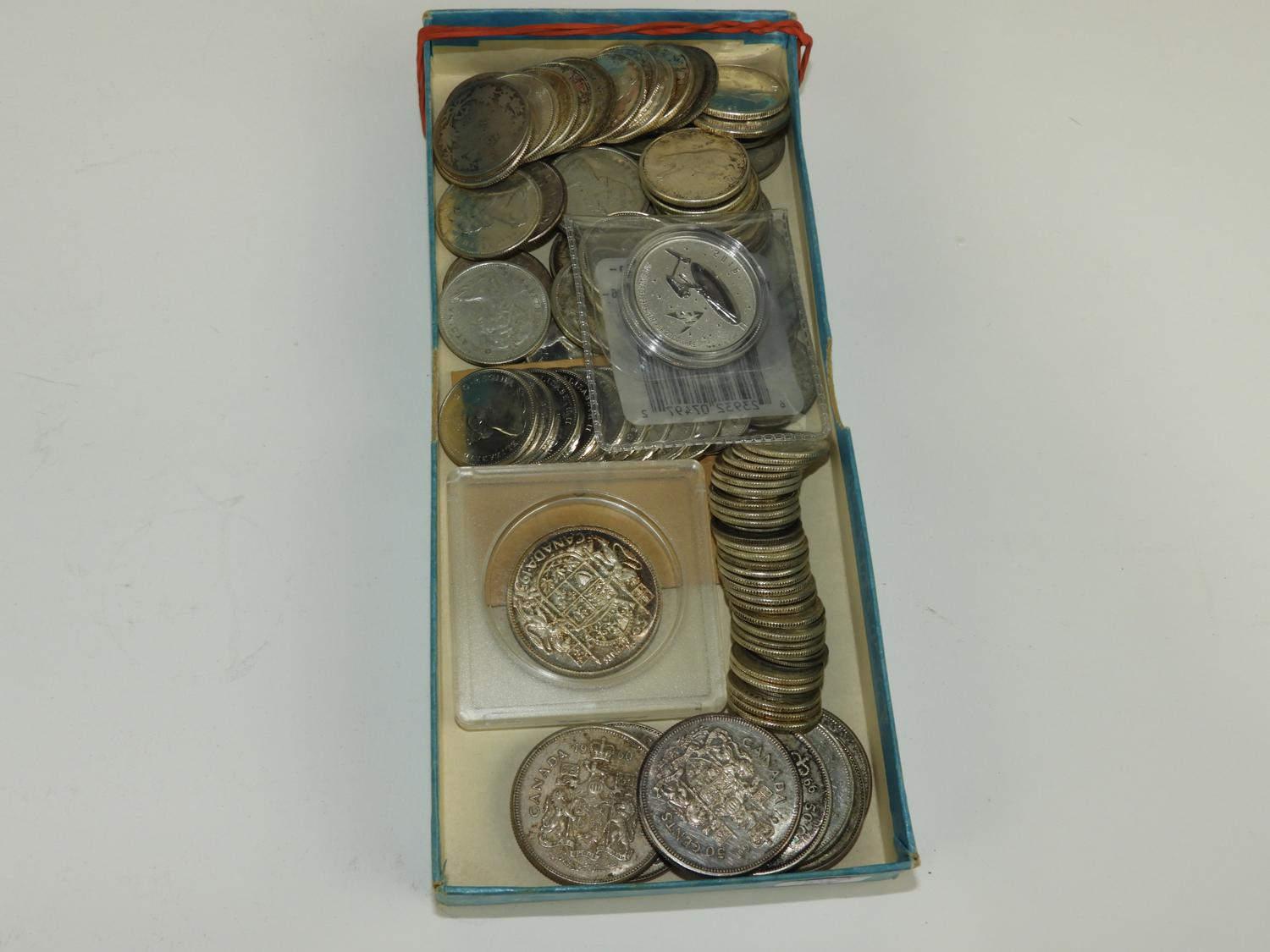 lot of canadian 1967 and later coins, 8 x 50 cent, 48 x 25 cent, 37 x 10 cent, 11 x 5 cent and 1 2016 .9999 silver star trec $20 coin.