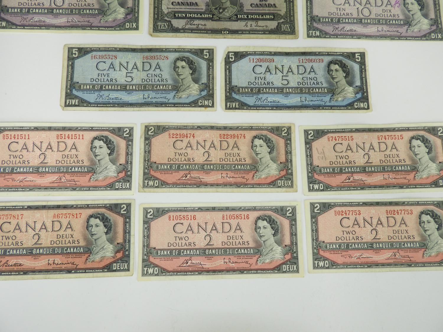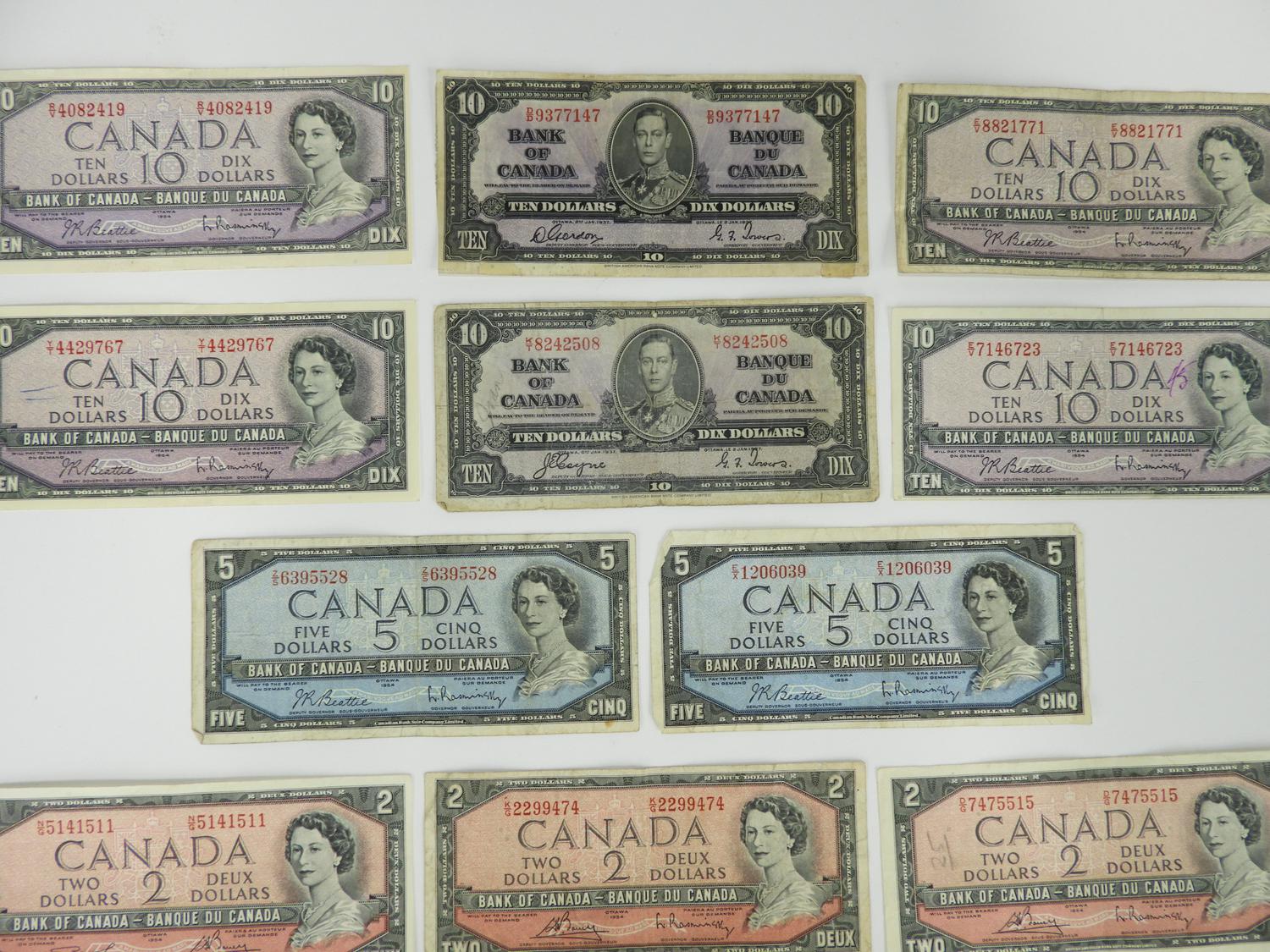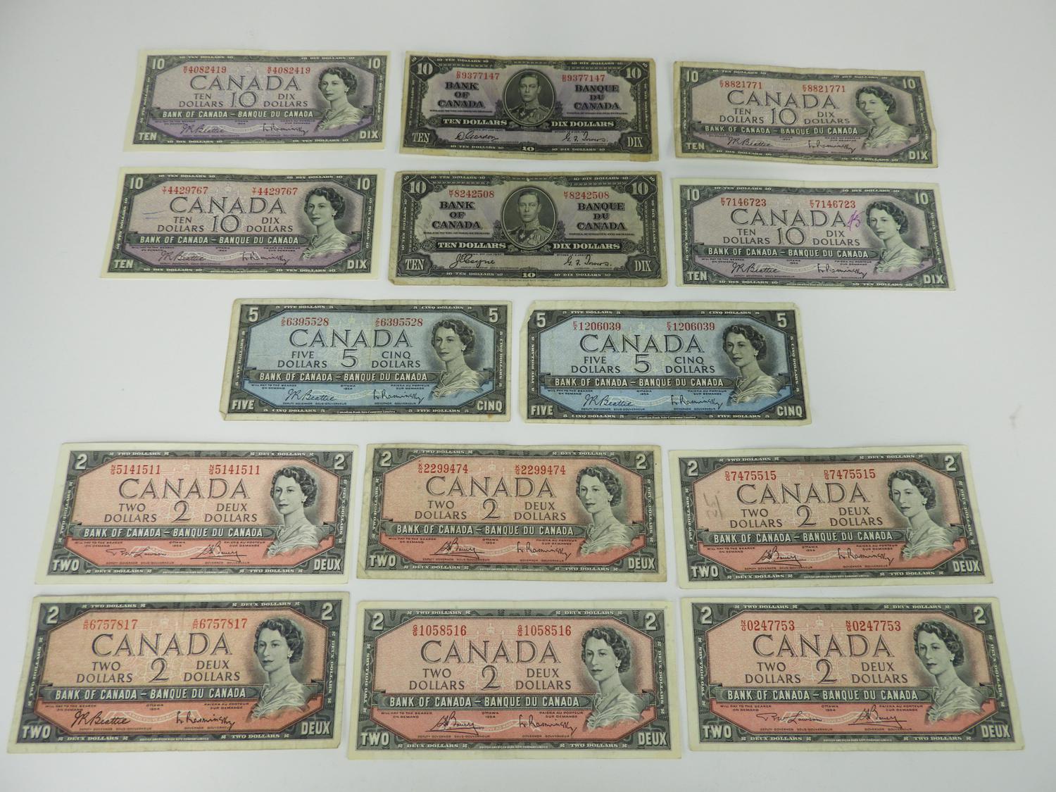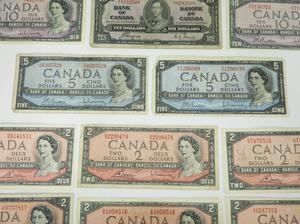 14 canadian notes, 6 x $10, 2 x $5, 6 x $2.