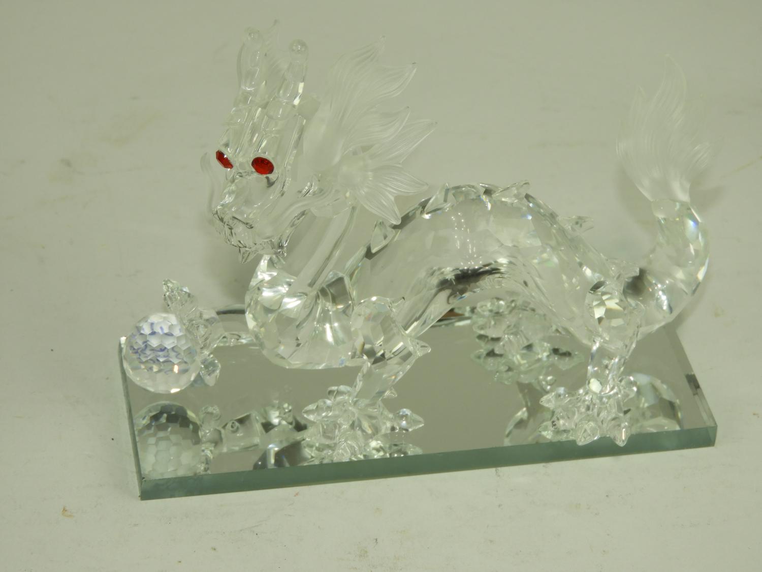 swarovski crystal dragon figurine, 4" x 5 1/2"