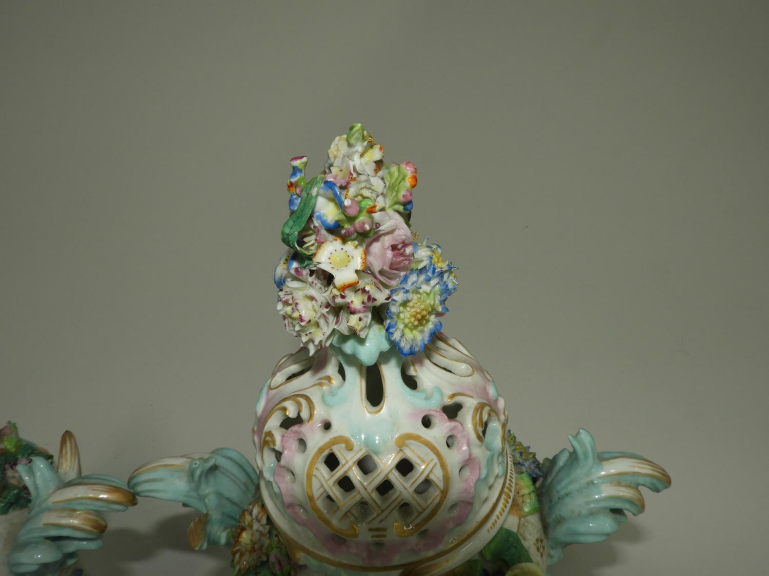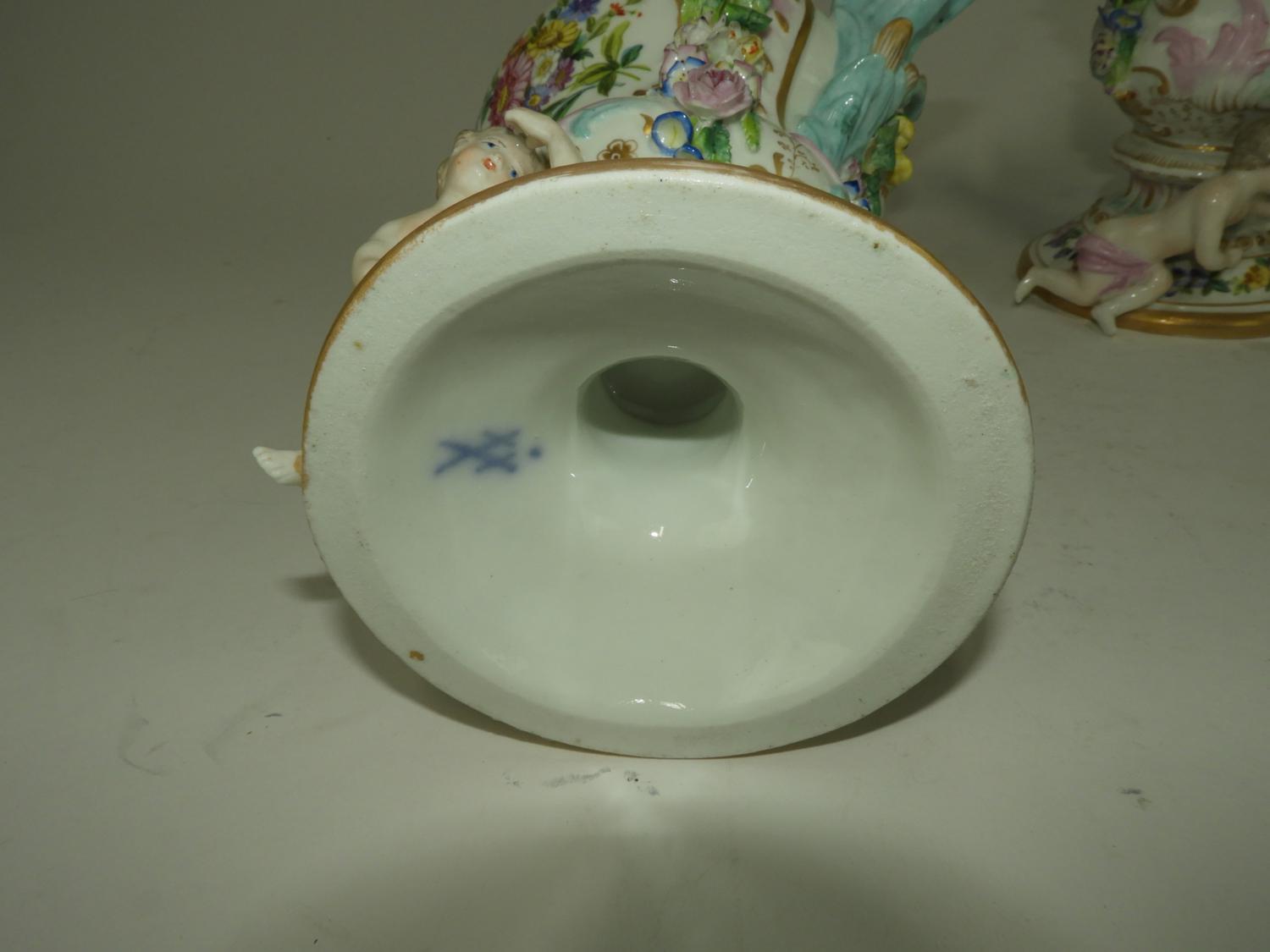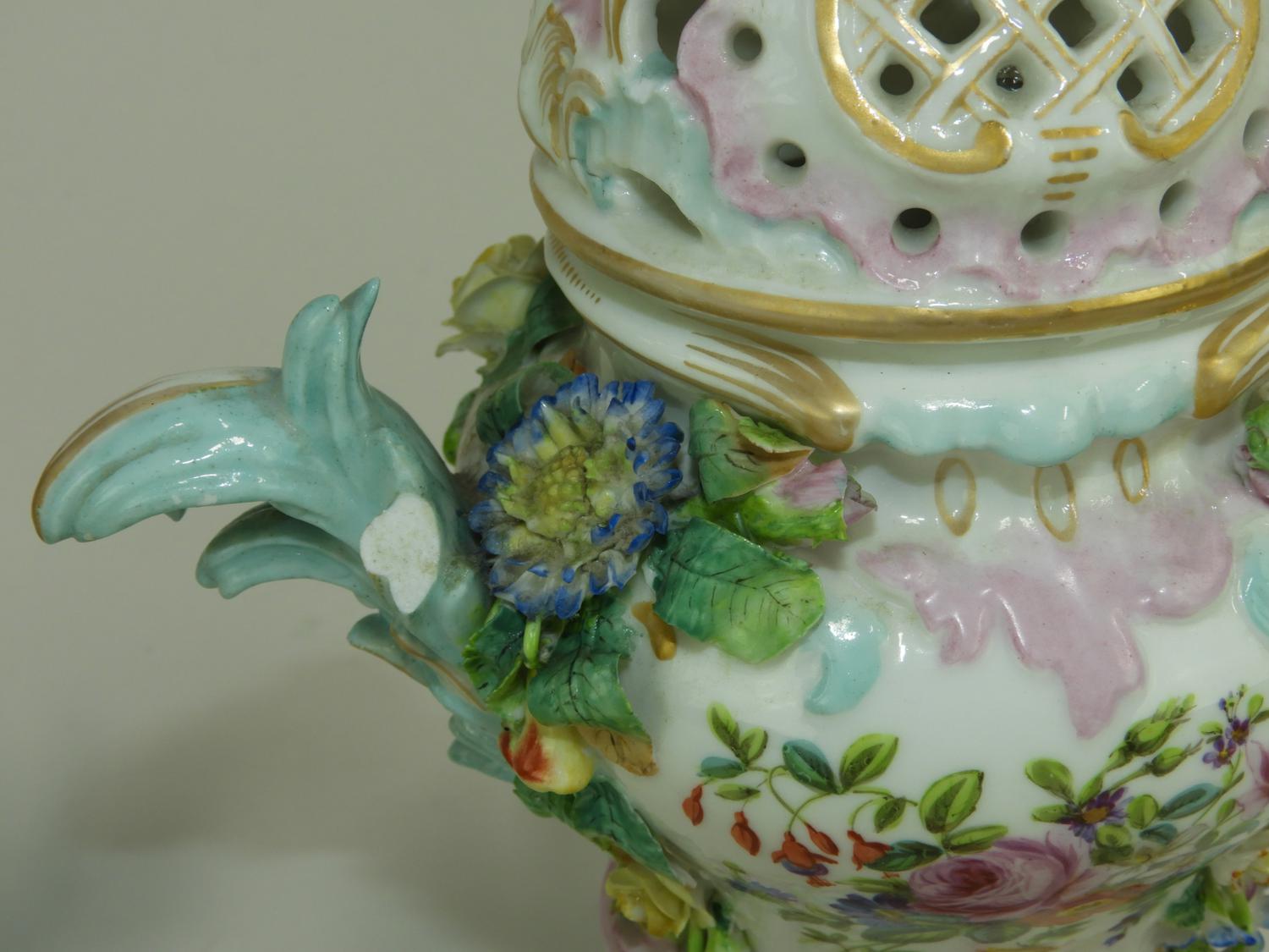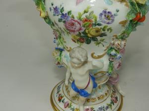 pair of meissen hand painted porcelain covered vases, losses, ht. 13 1/2"