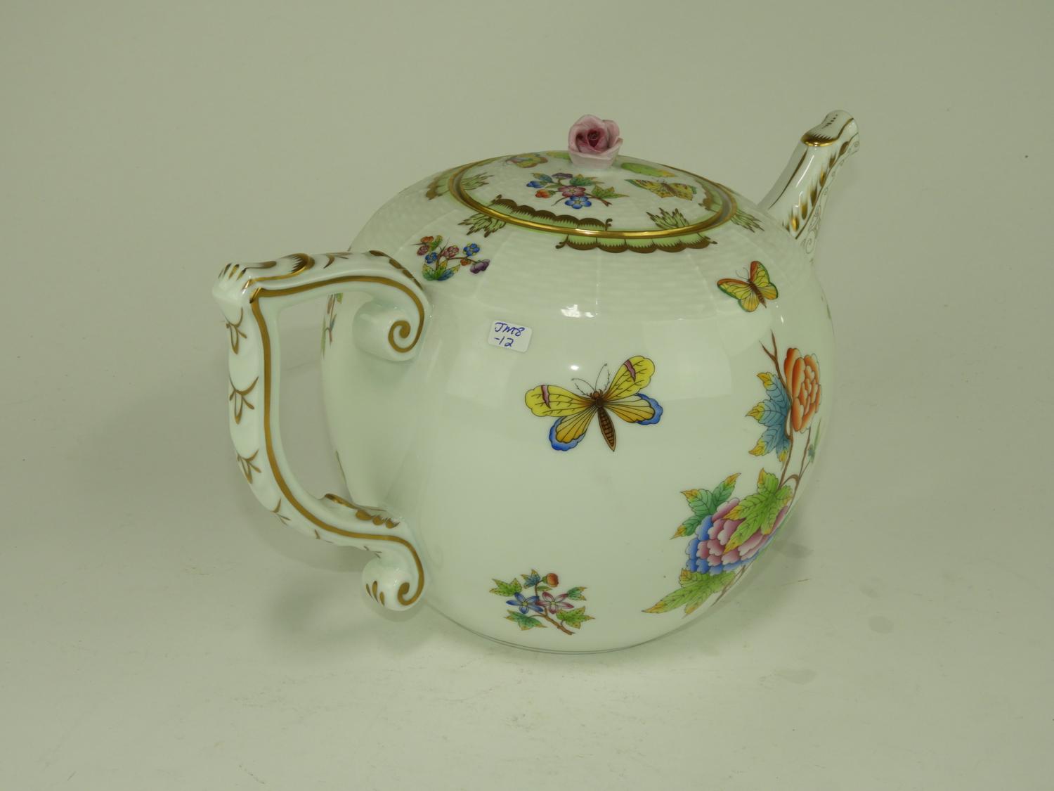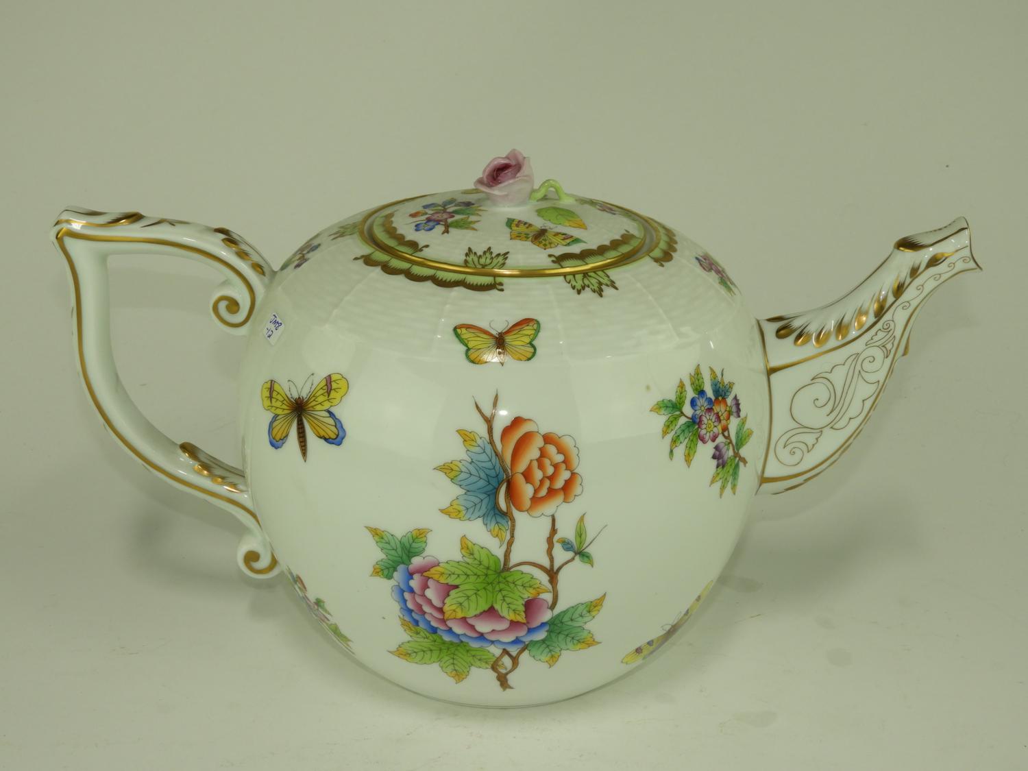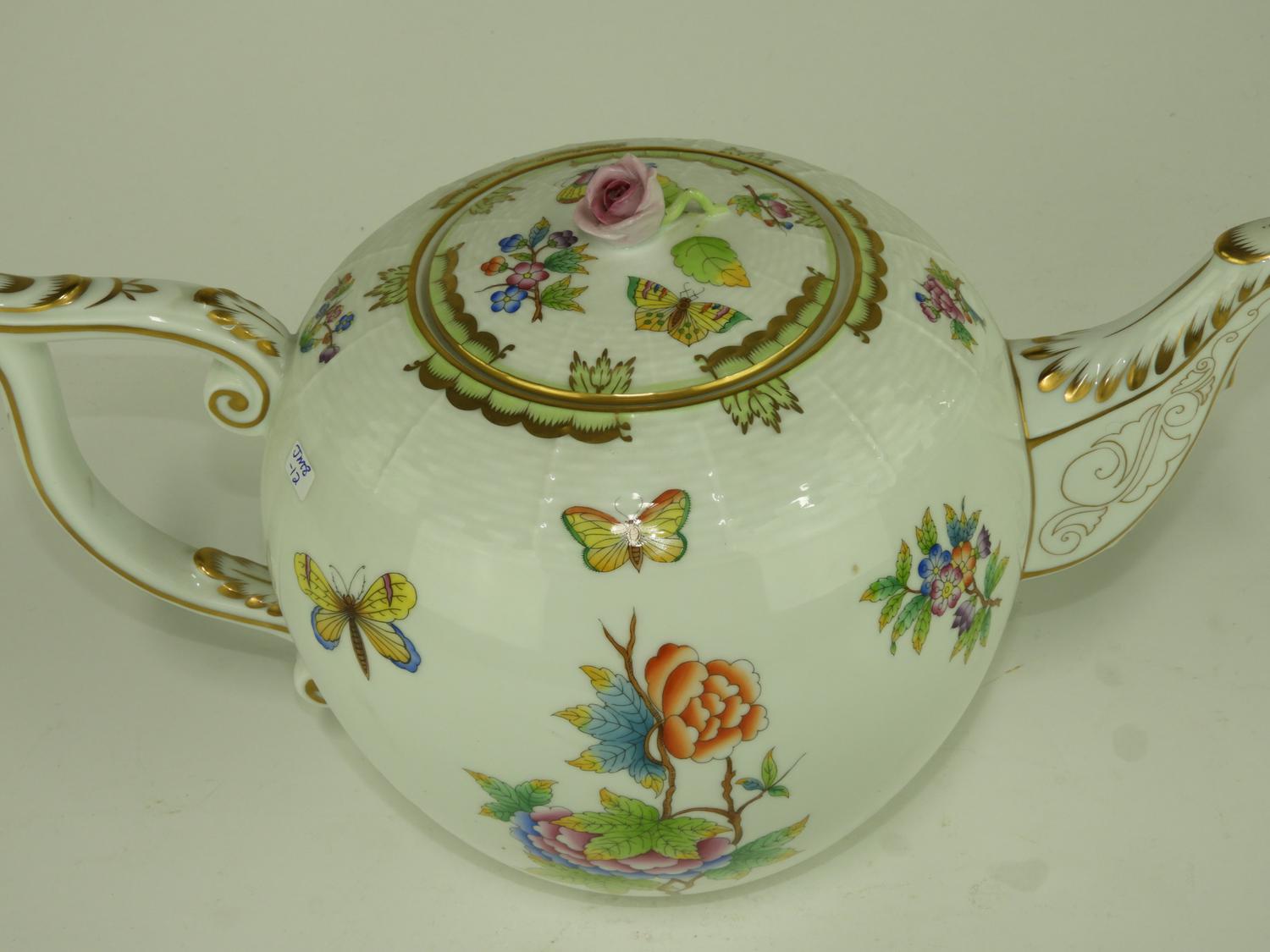 herend hand painted porcelain tea pot, of large size.