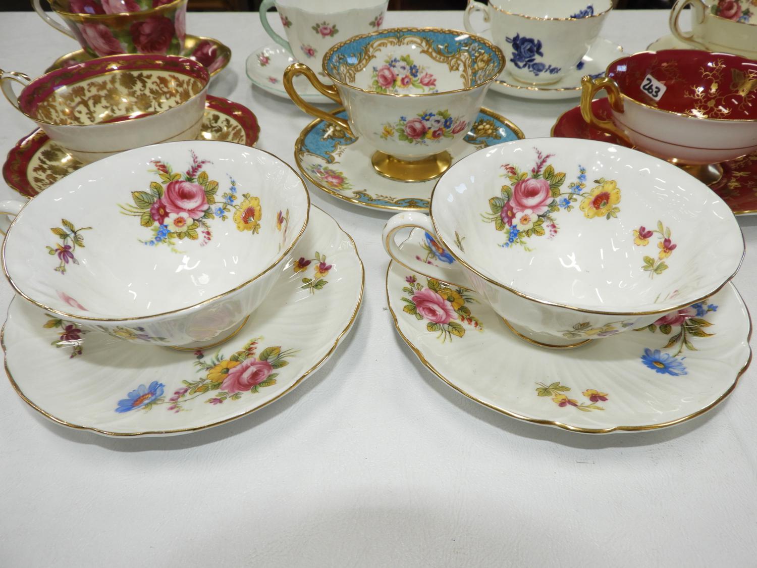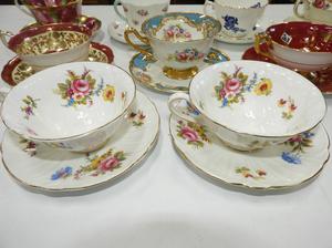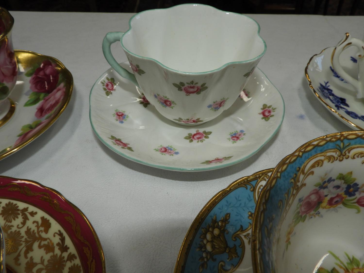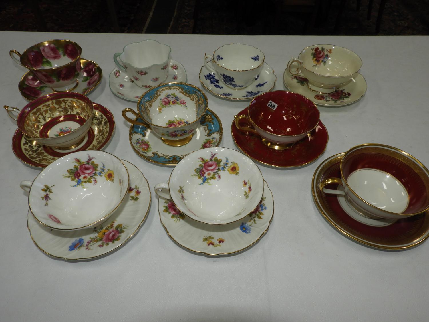 lot of 10 teacups and saucers including shelly, coalport etc.