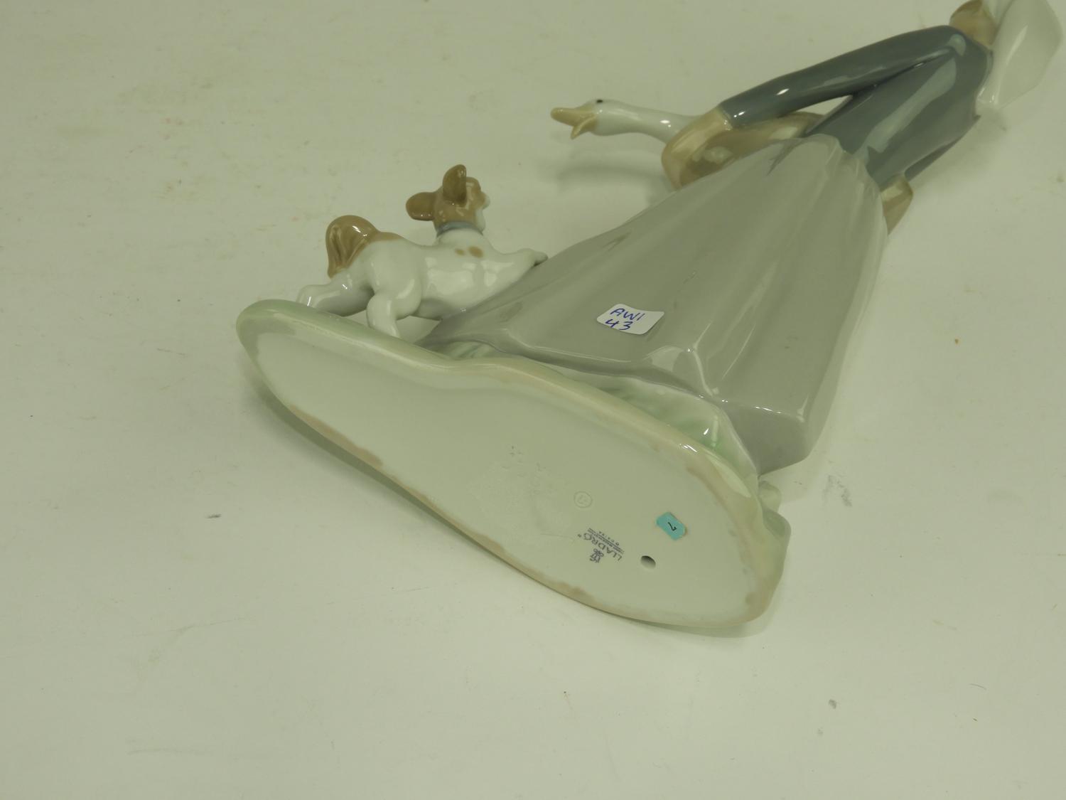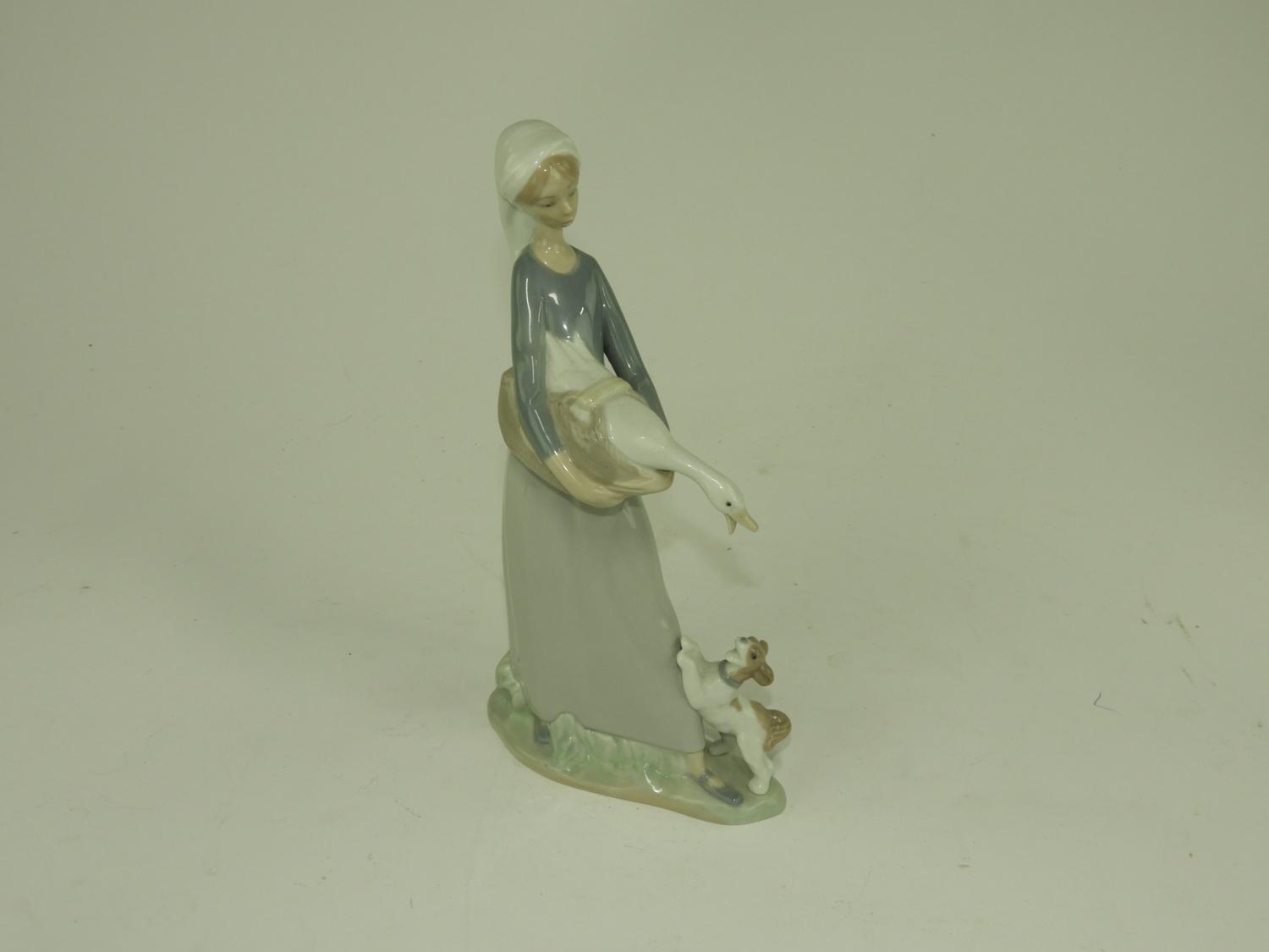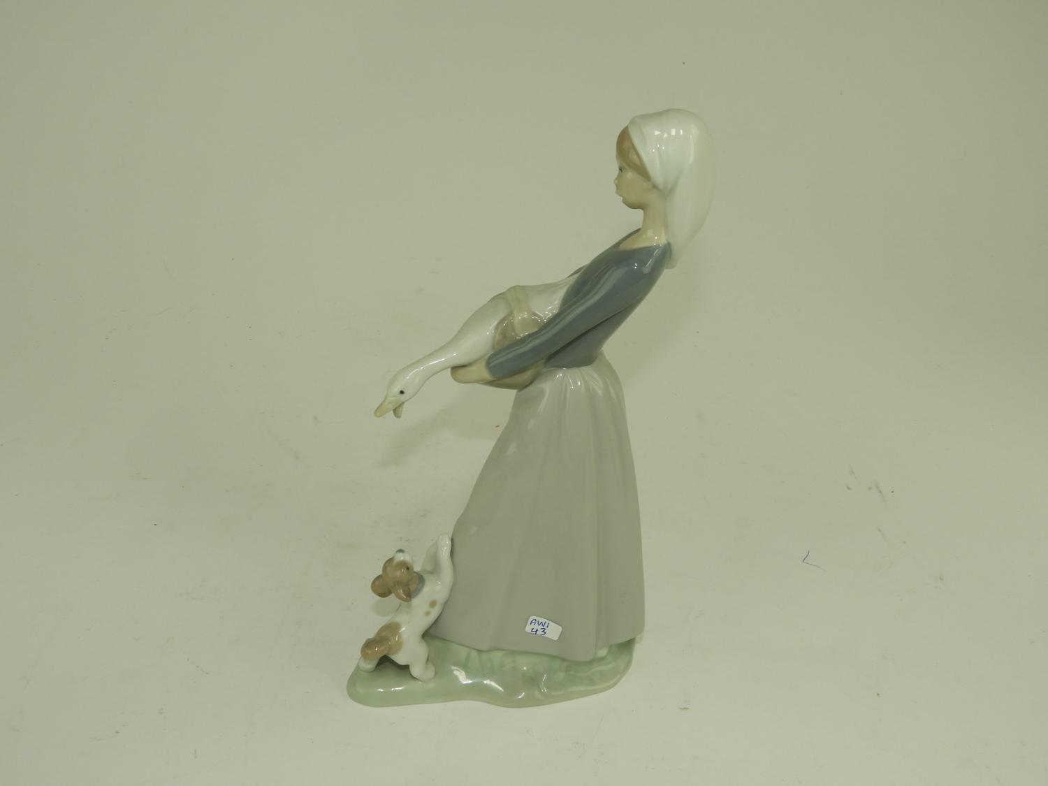lladro figurine of a farm girl with goose and puppy, with original box.