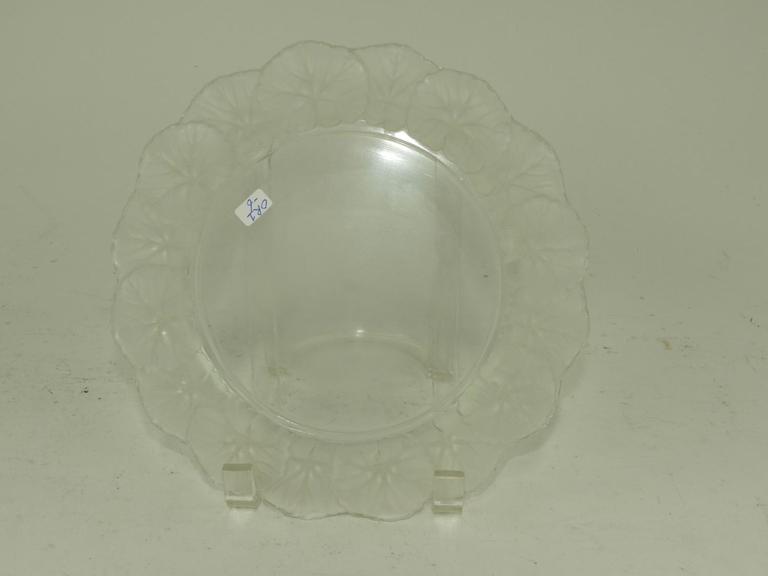 lalique frosted glass plate, dia 8 1/4" floral decorated rim
