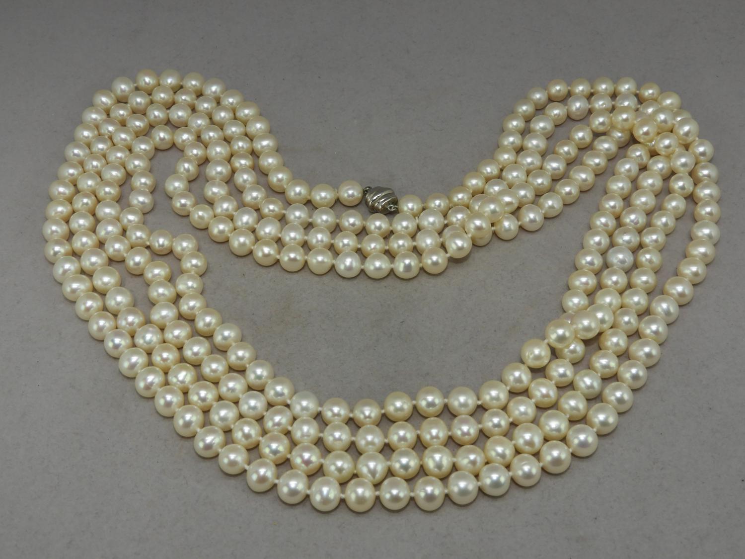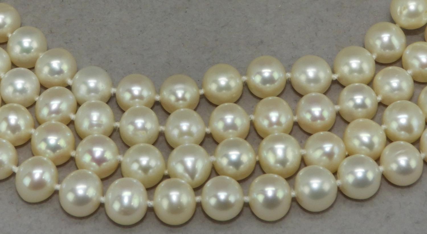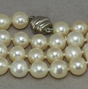 8mm pearl necklace, 100" in length, Birks Sterling silver clasp