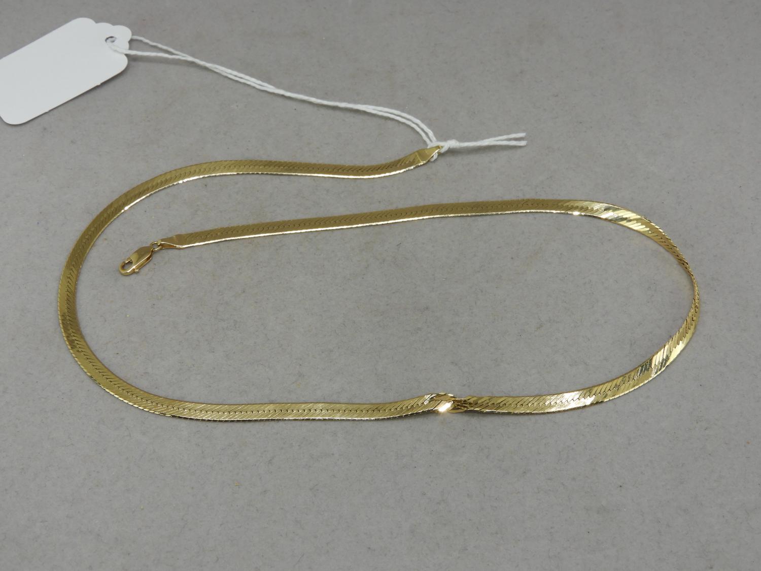 italian 14k yellow gold flat link necklace, condition noted, 8.8grams