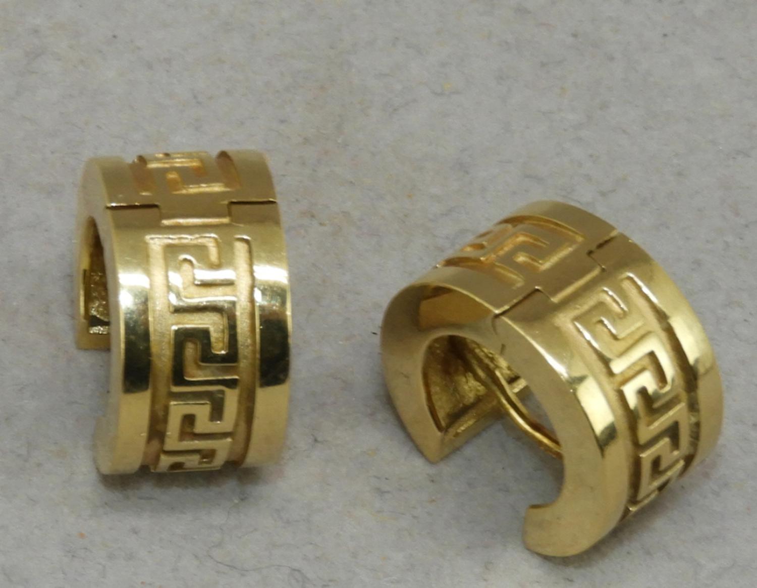 italian 18k gold greek key earrings, 12.7 grams