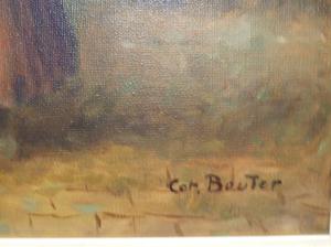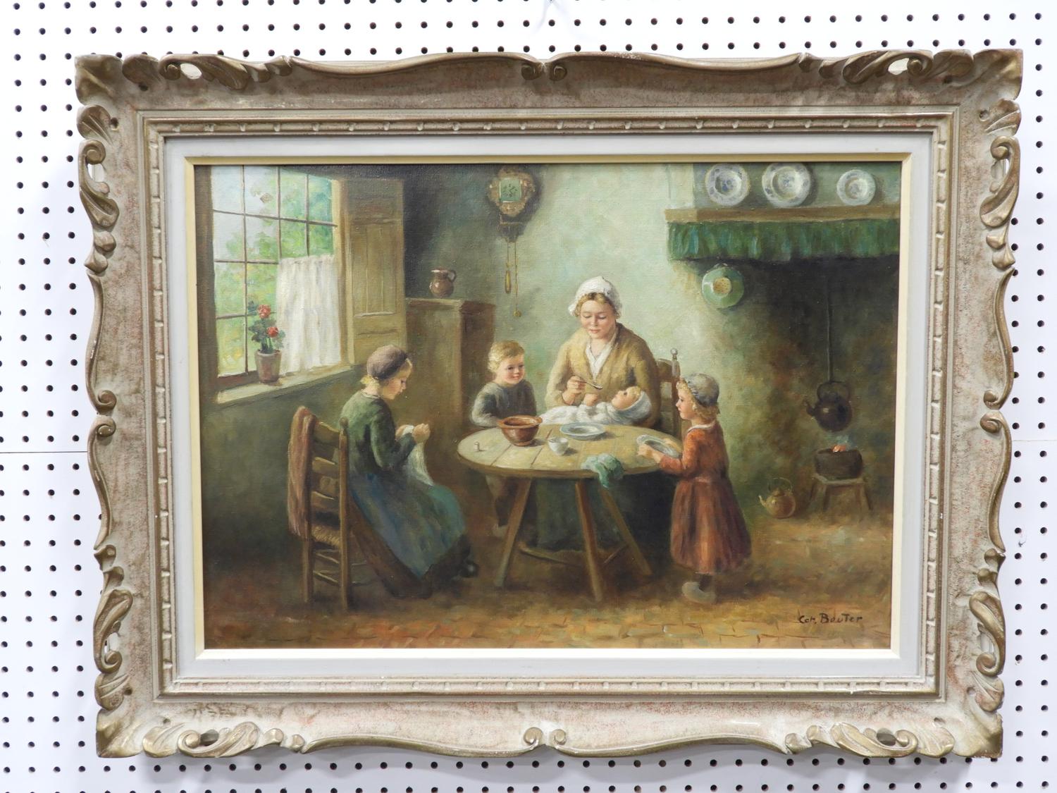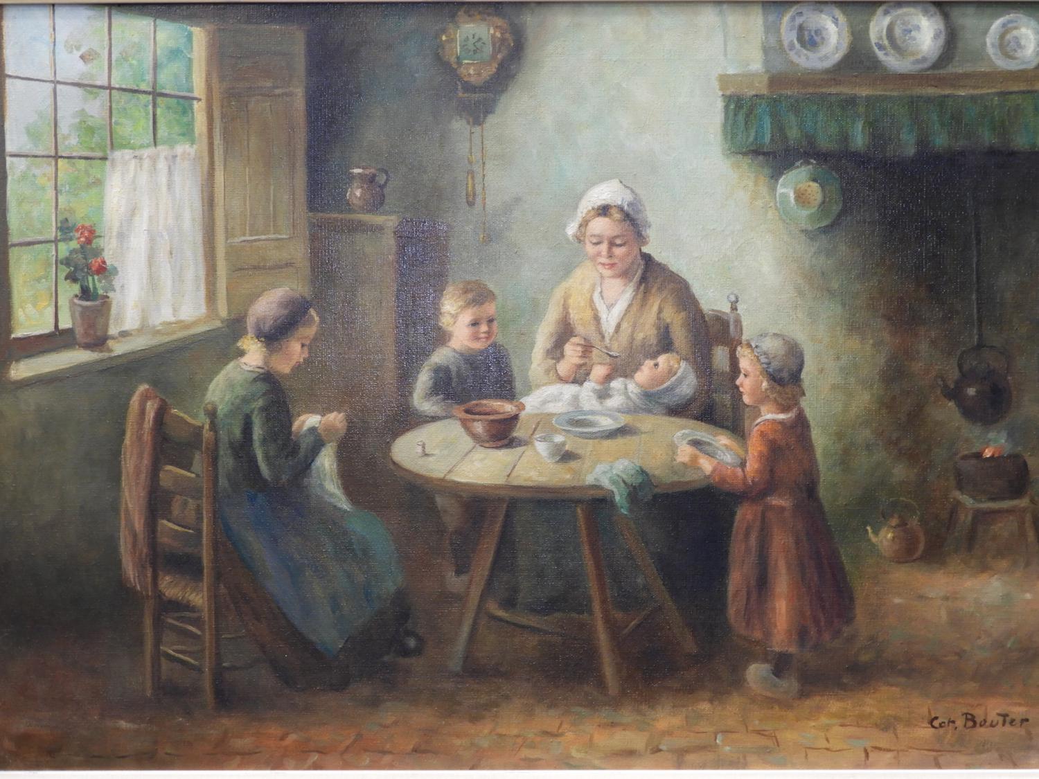 cornelius wouter bouter, oil on canvas, 12" x 26", "interior scene".