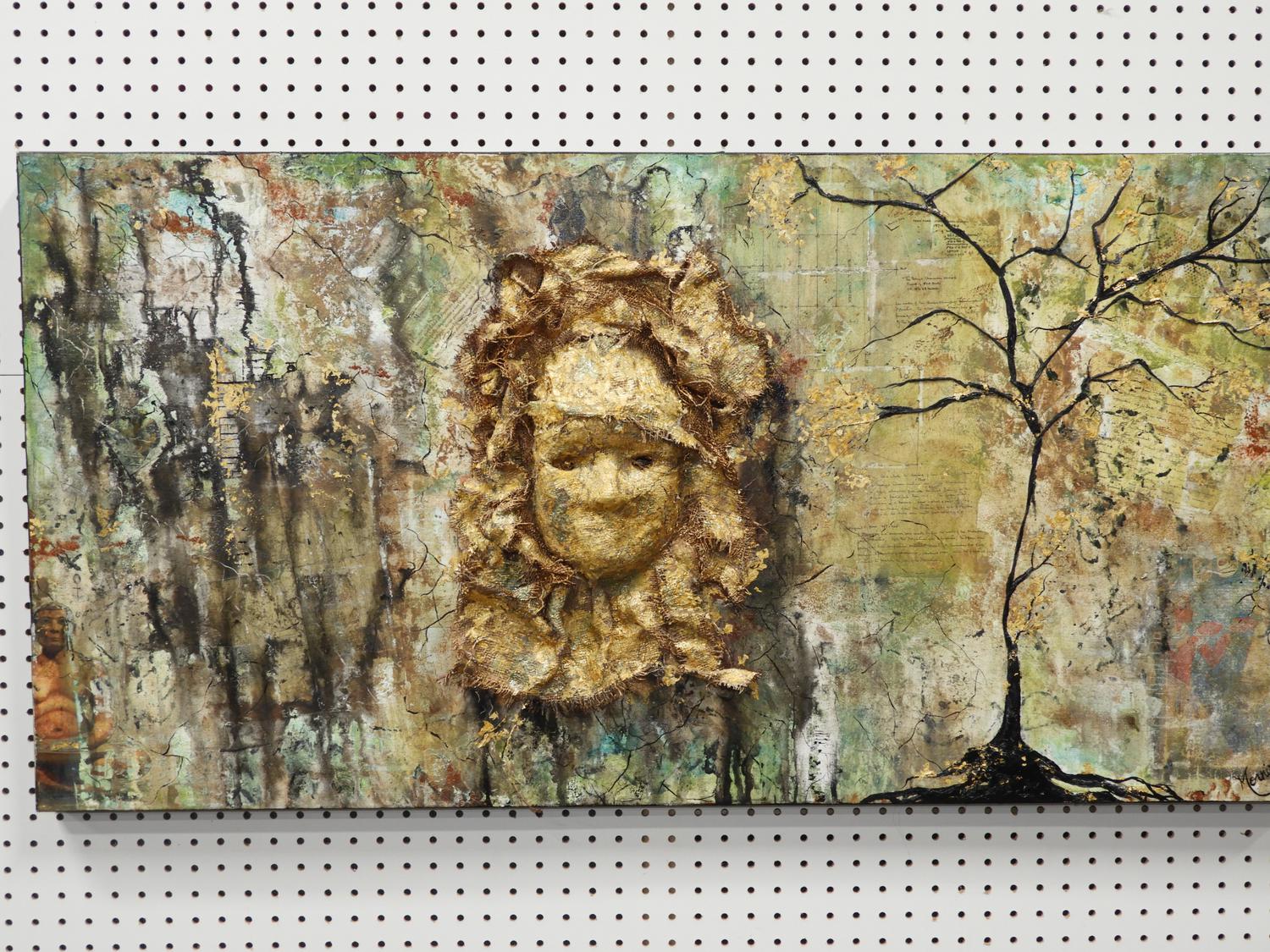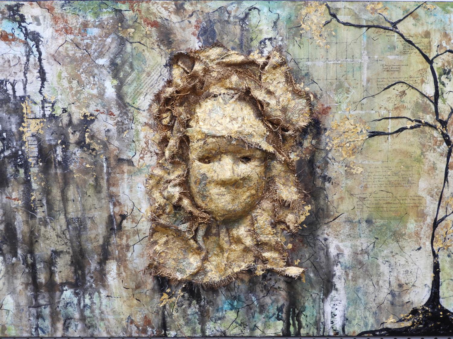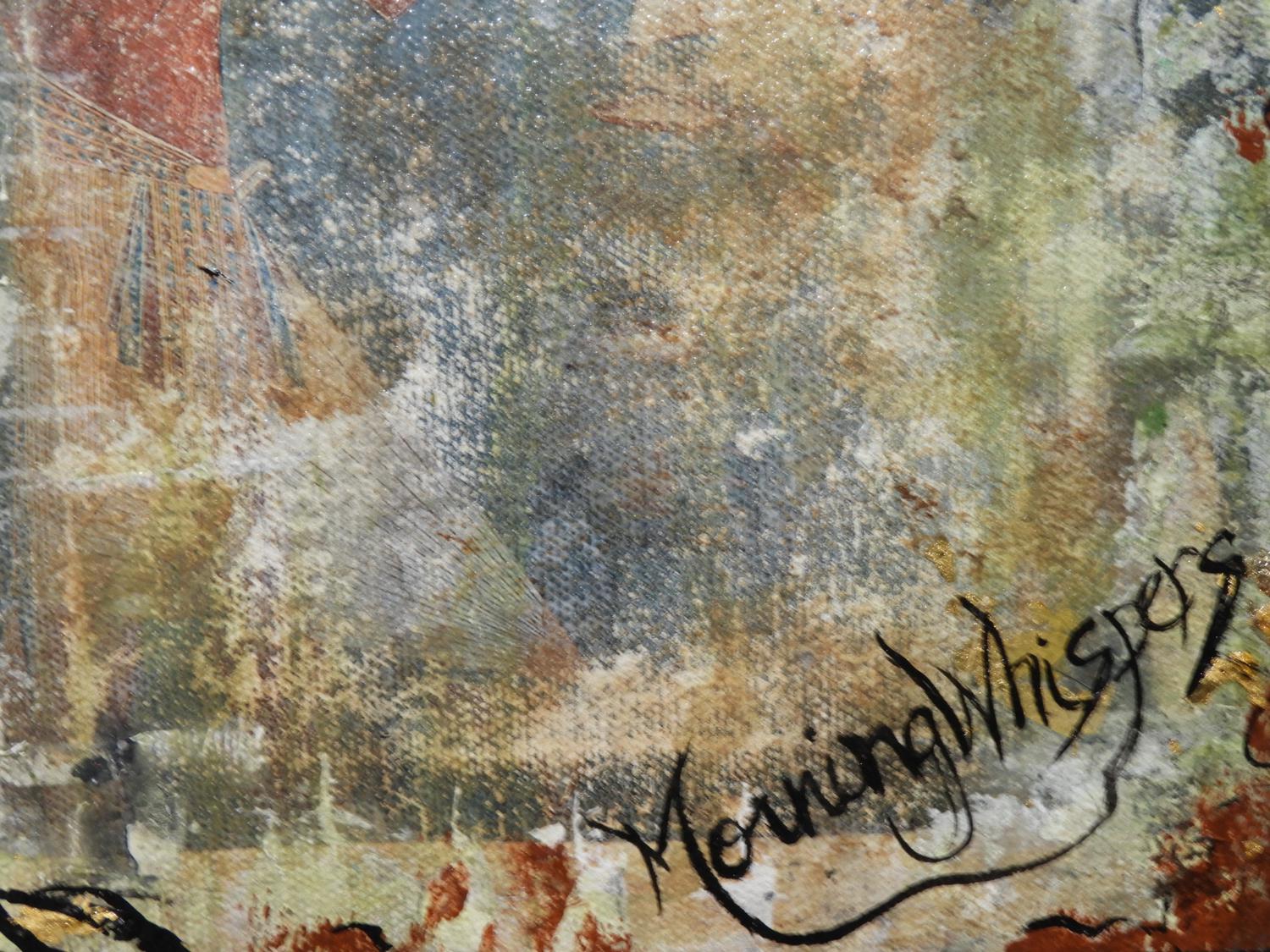 victoria potter, "morning whispers", canadian, mixed media on canvas, 24" x 48", "the keepers of gold series #1",