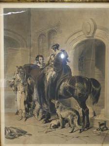 after sir edwin henry landseer (1802-1873), engraved by alexander hay ritchie, 26 1/2" x 20 1/2", "the return from hawking"