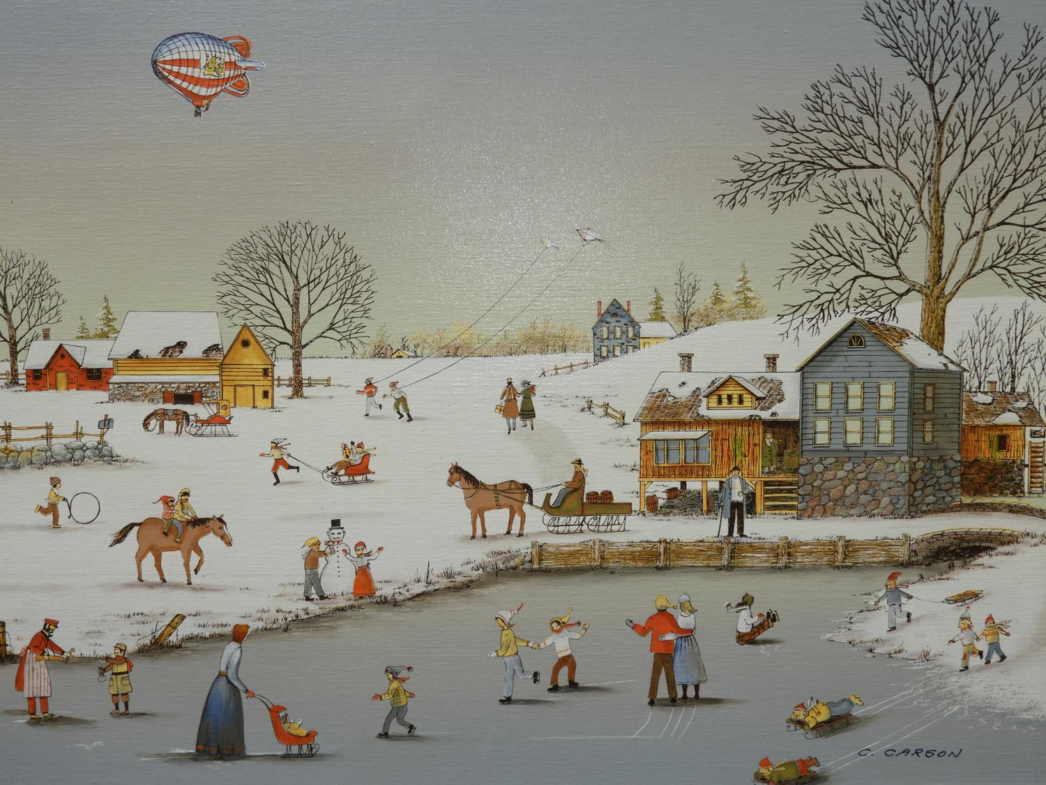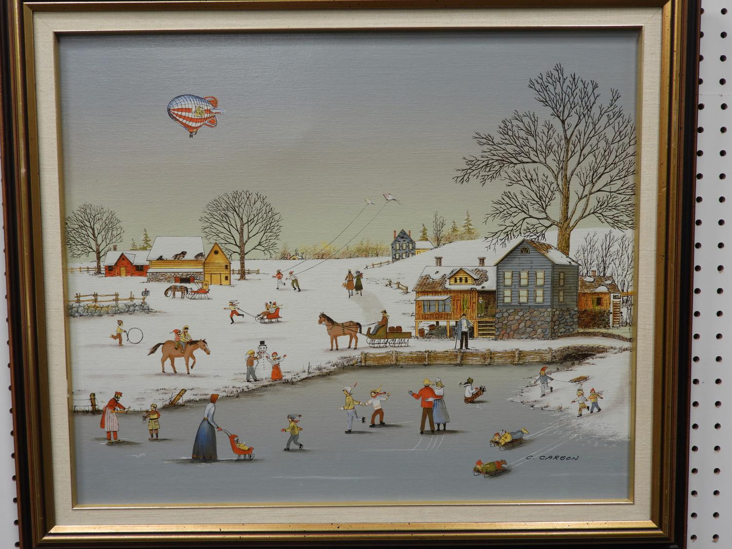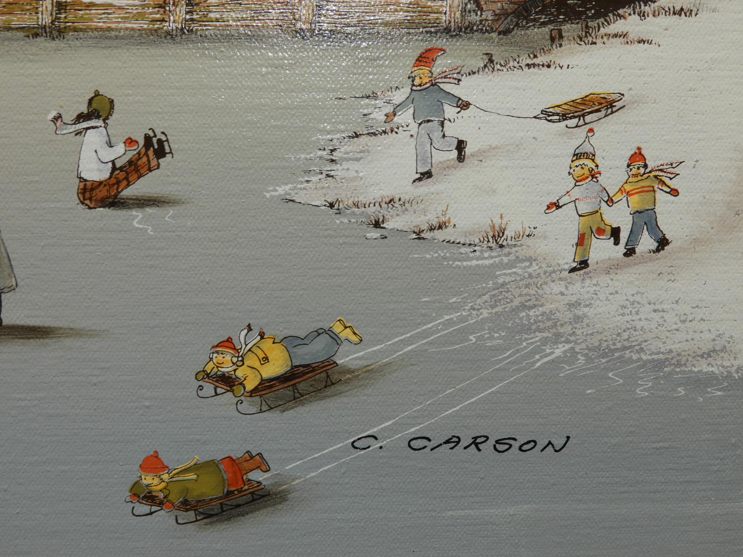 c. carson, oil on canvas, 20" x 24", "winter scene".