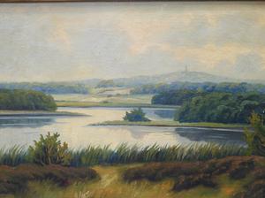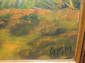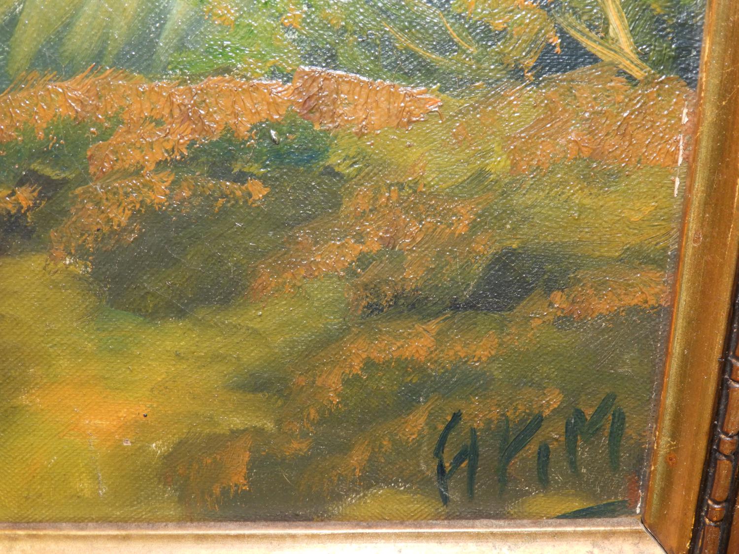 bearing initials akm, oil on canvas, 18" x 26", "rural landscape".