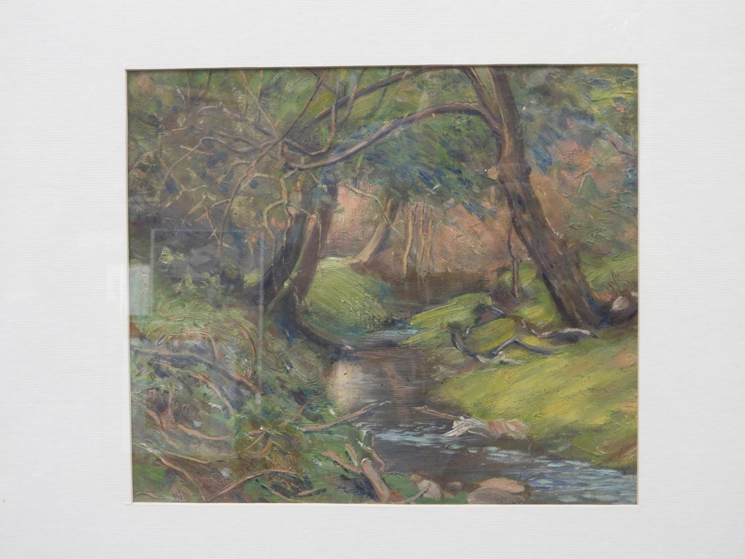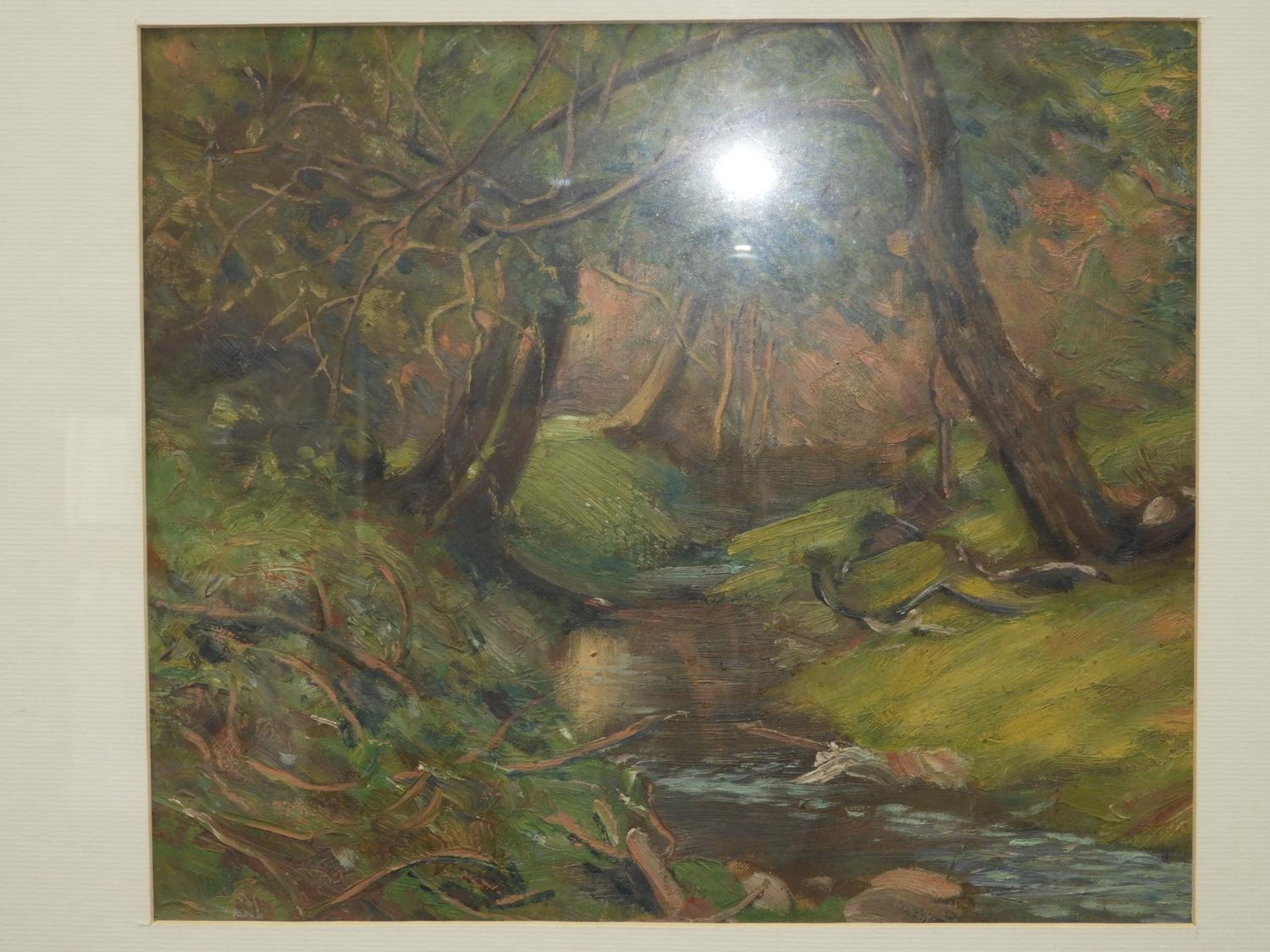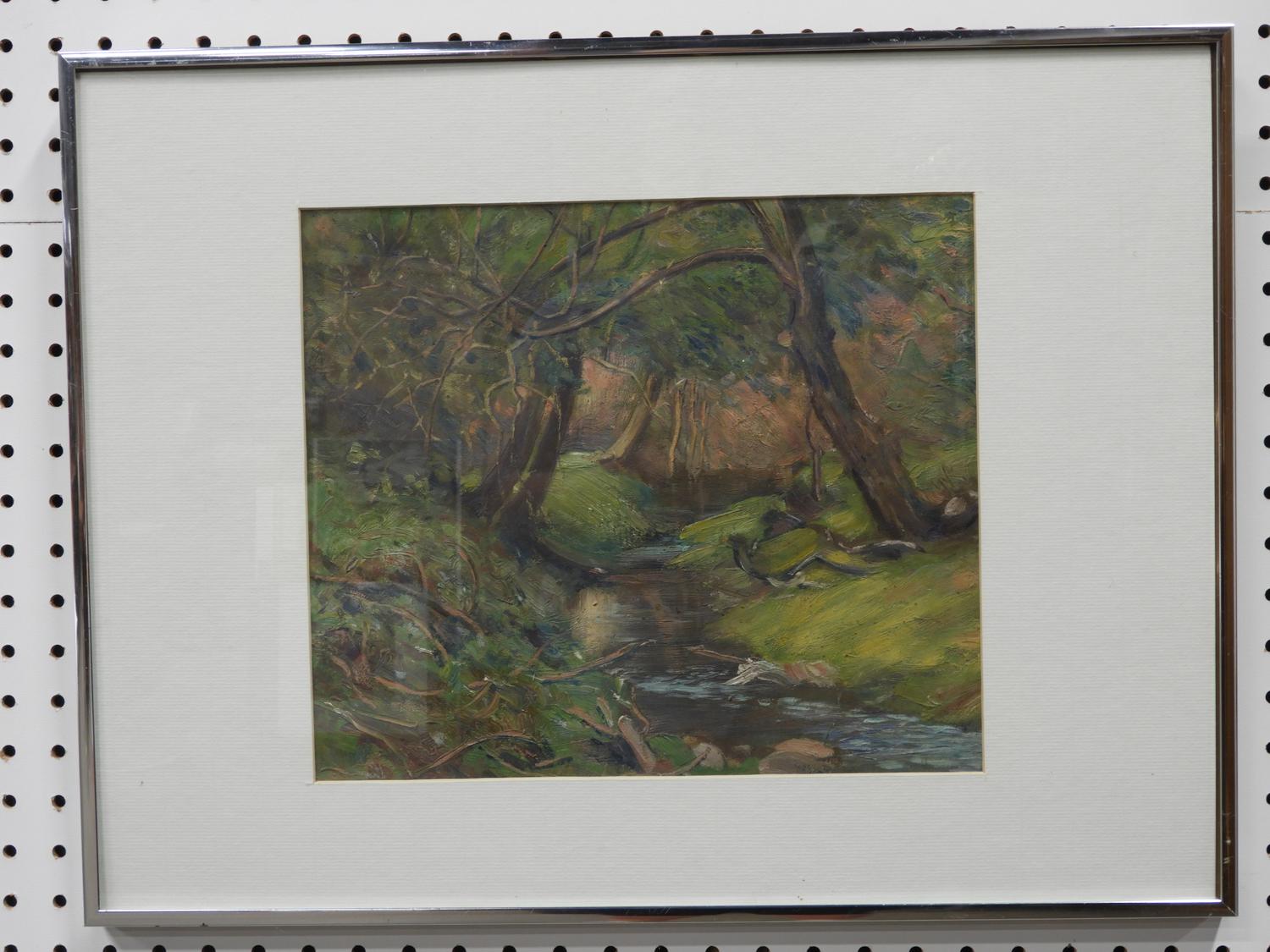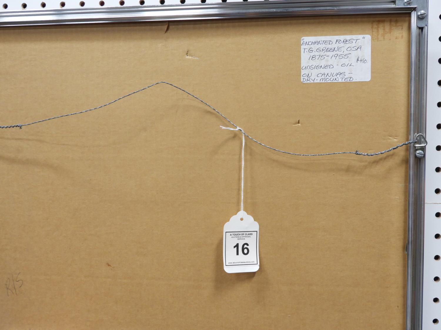attributed to thomas garland greene, oil on canvas, 11" x 13", "enchanted forrest".