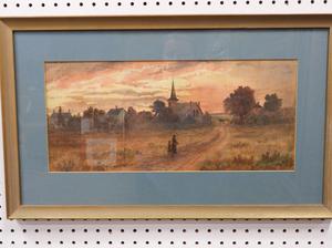 thomas mower martin, watercolour, 9" x 19", "evening stillness".