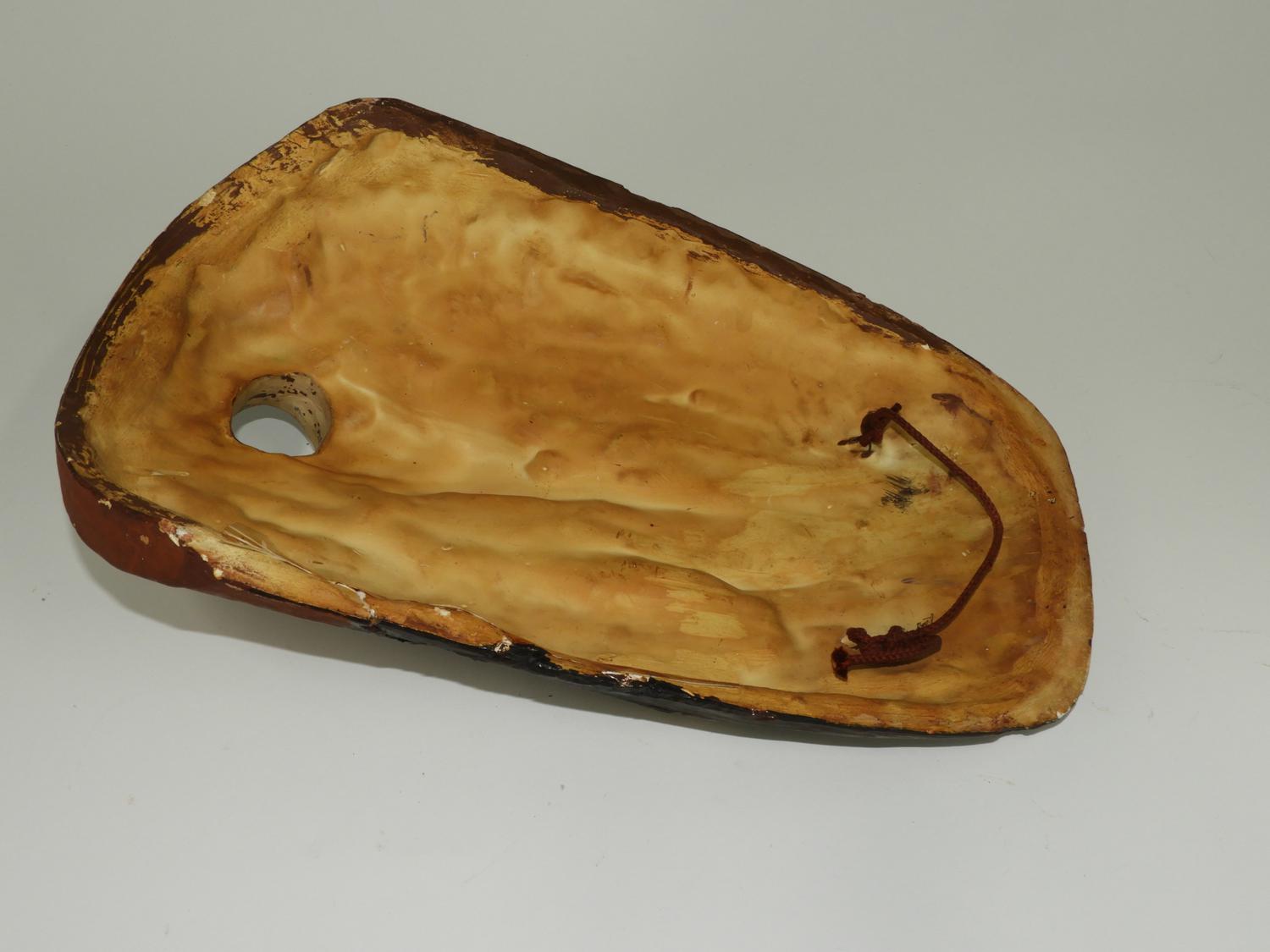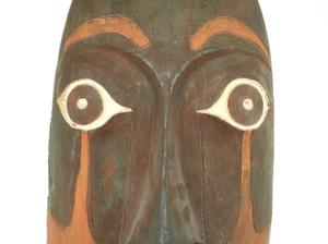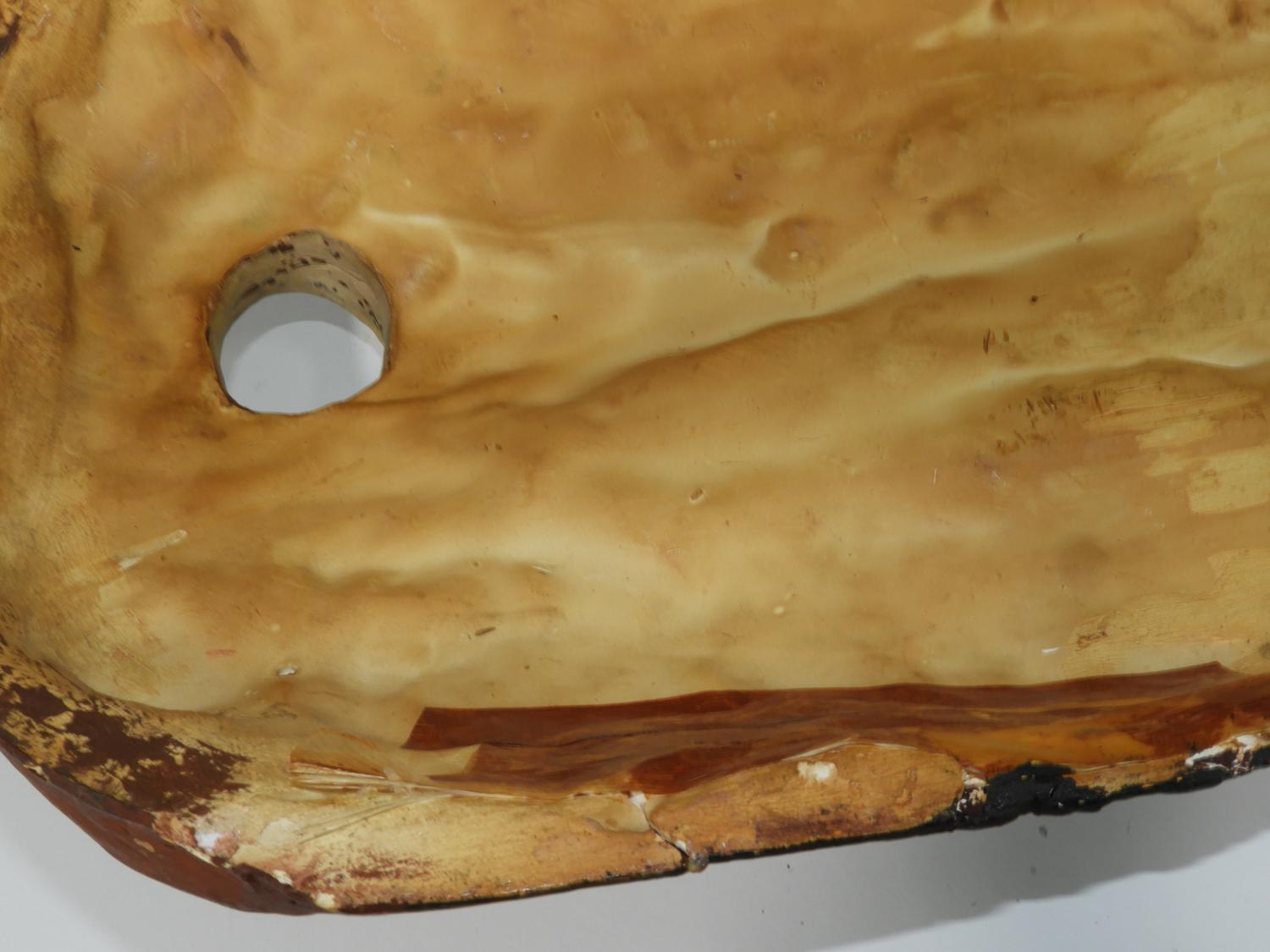 painted and incised plaster mask, ht. 19".